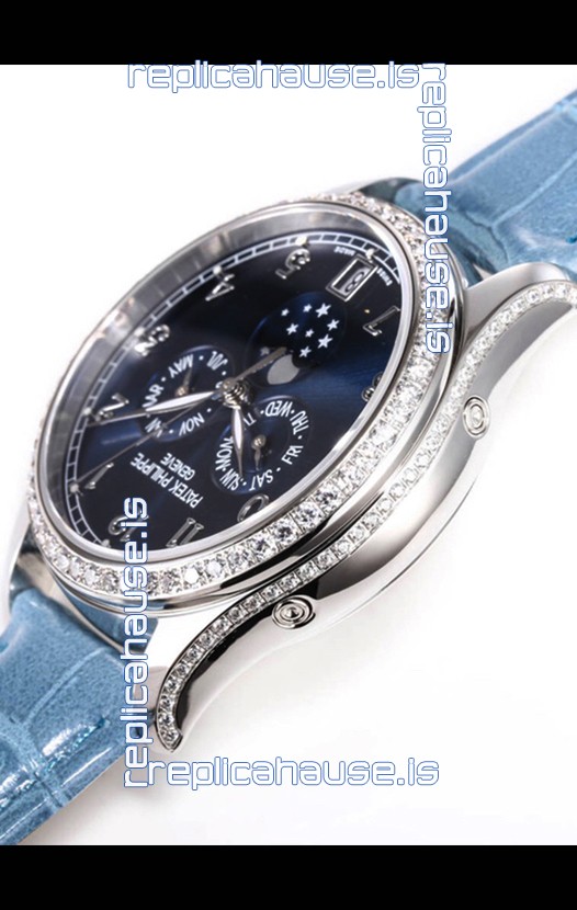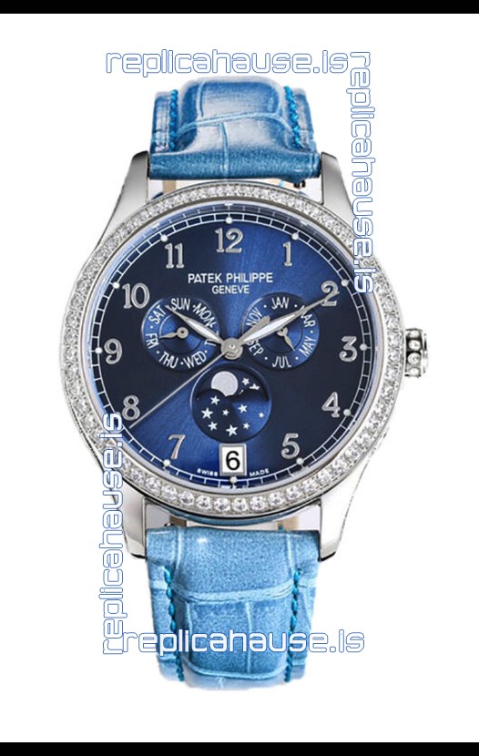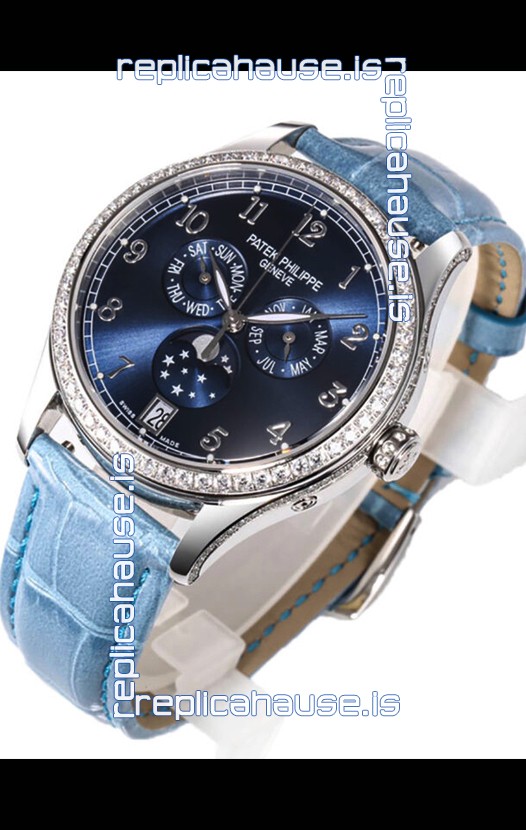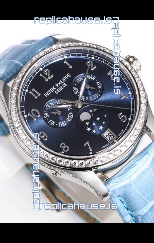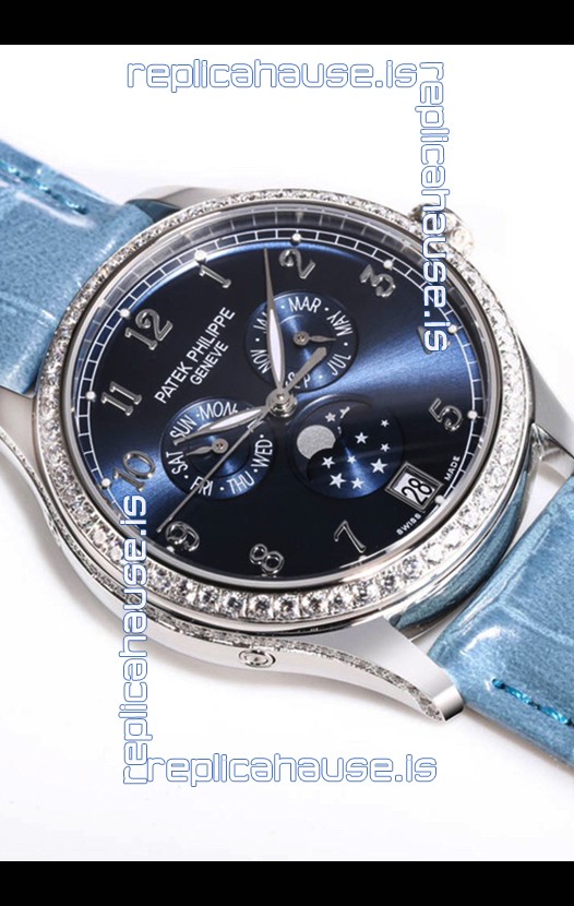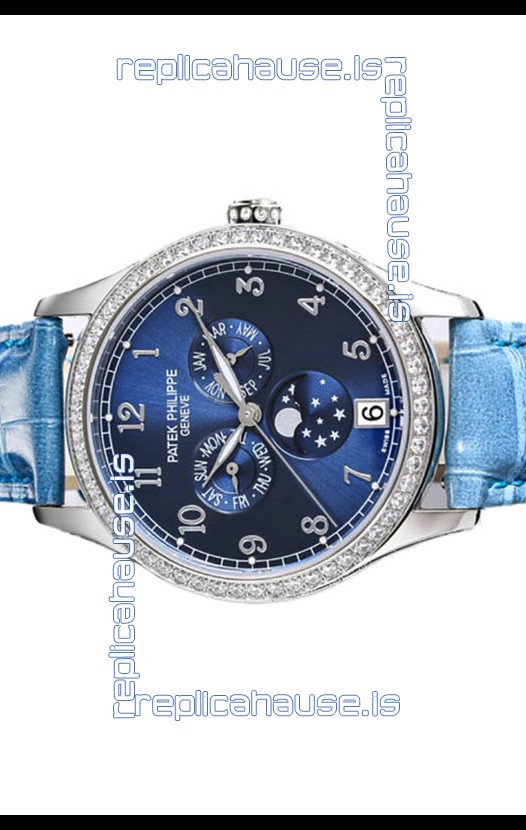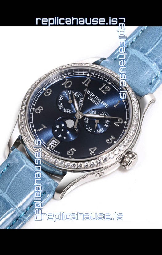 Patek Philippe Complications 4948G Annual Calendar Moonphase Blue Dial White Gold Swiss Replica