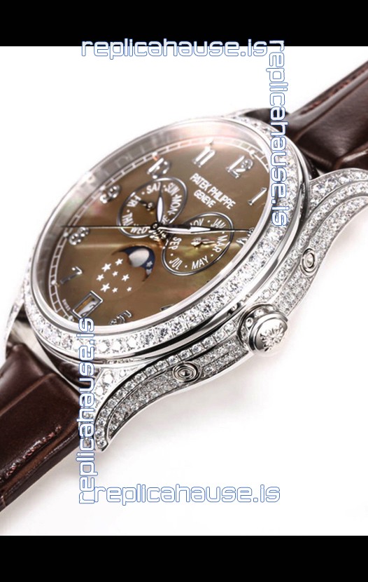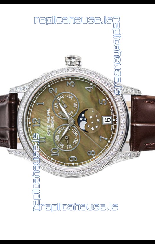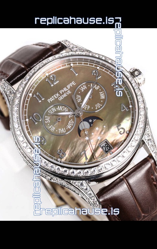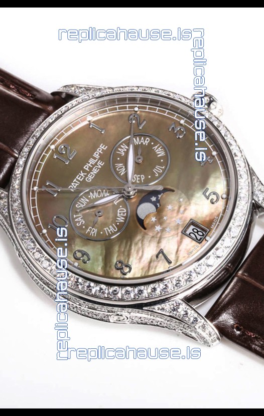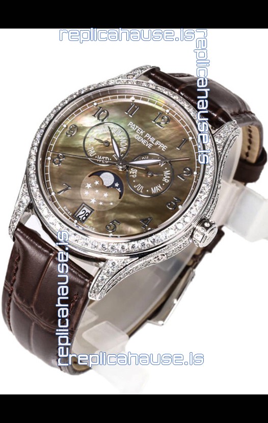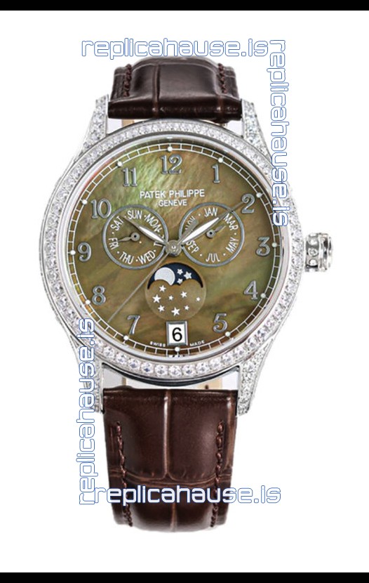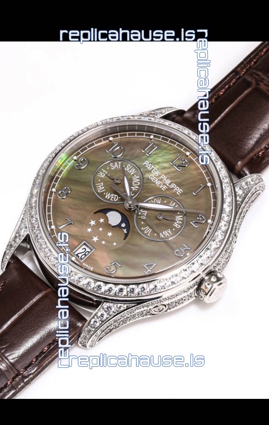 Patek Philippe Complications 4948G Annual Calendar Moonphase Pearl Dial White Gold Swiss Replica