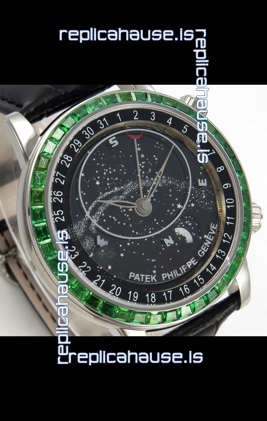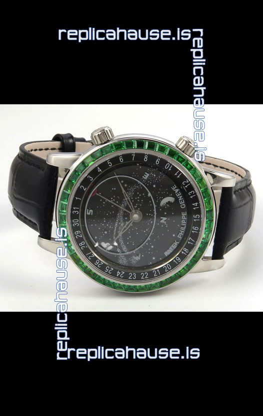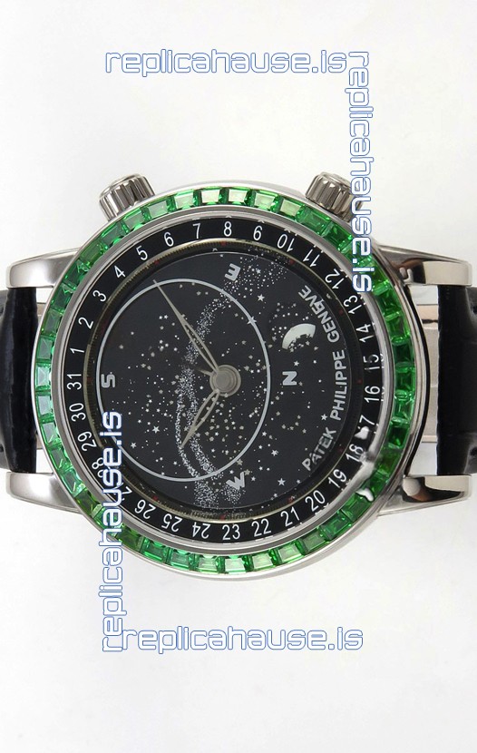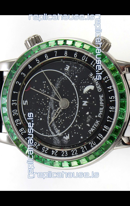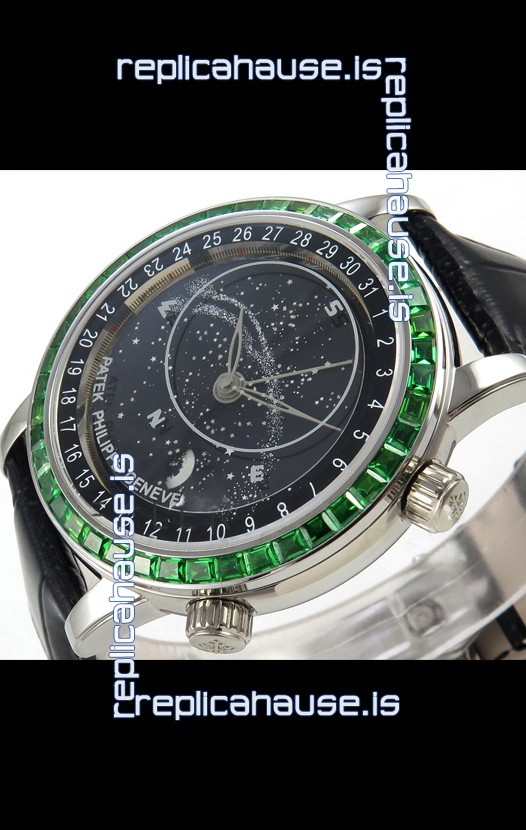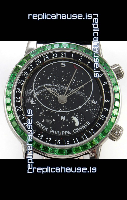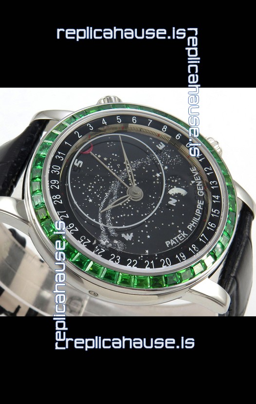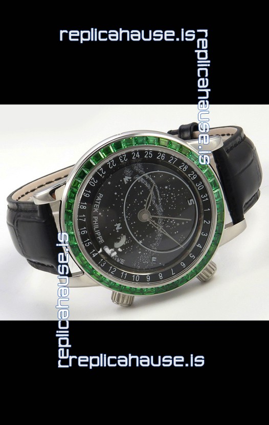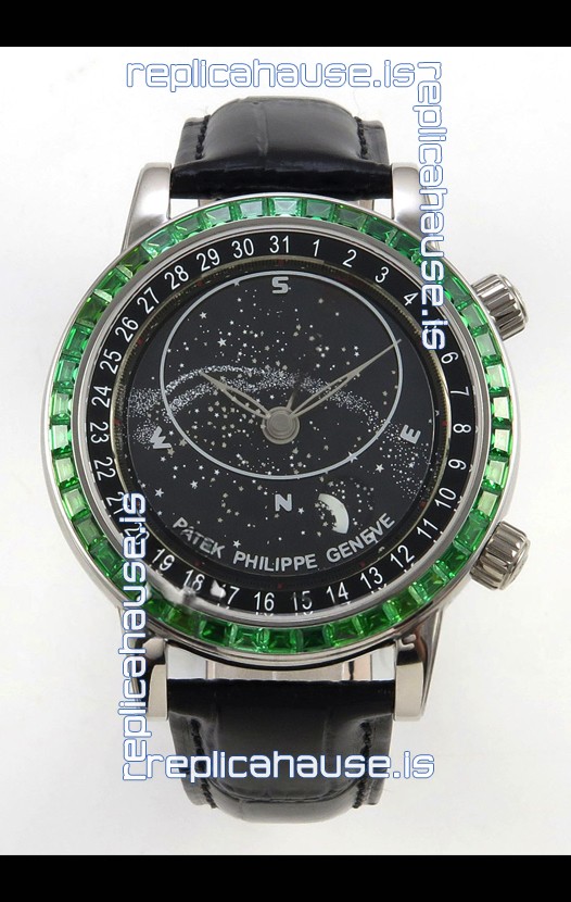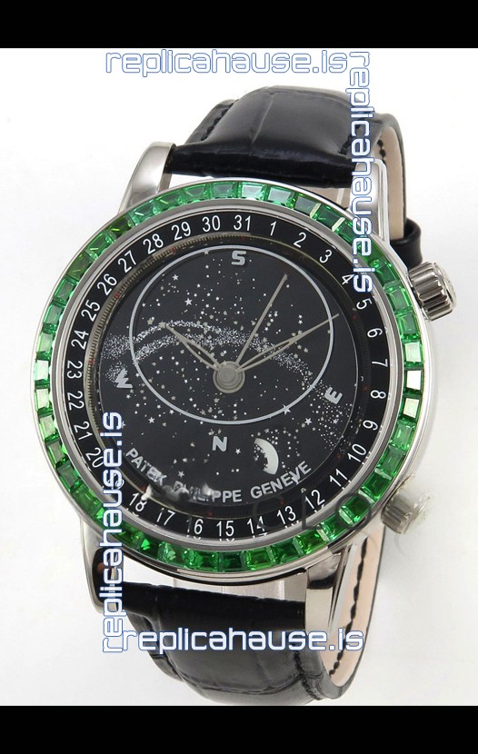 Patek Philippe Grand Complications 6102 Black Dial Green Diamonds Swiss Replica Watch