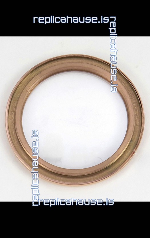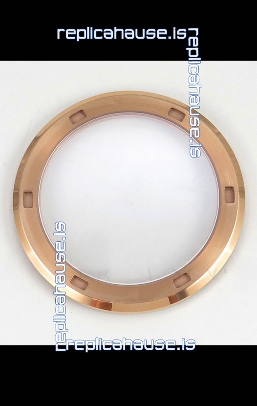 18K Rose Gold Plating on 904L Solid Stainless Steel Case with Open Case Back Cover in Steel. Polished Bezel Borders