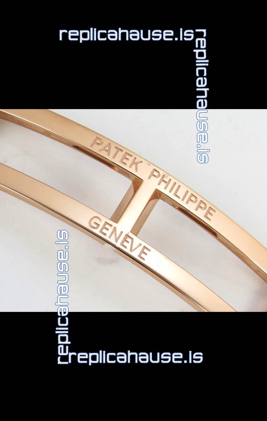 18K Rose Gold Plating on 904L Solid Stainless Steel Strap linked with Screws with Folding Patek Philippe Clasp.