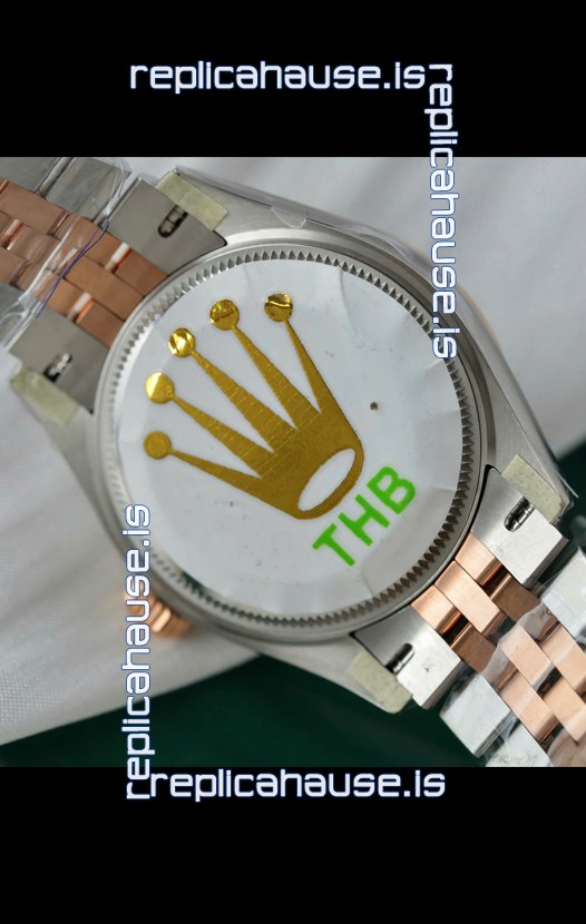 18K Rose Gold Plating on 904L Stainless Steel Two Tone Polished Case with Bezel as per the original.