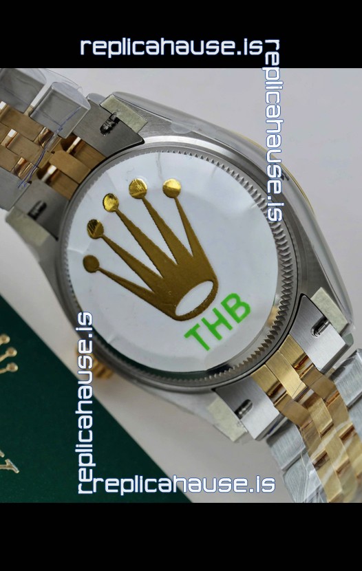 18K Yellow Gold Plating on 904L Stainless Steel Two Tone Polished Case with Bezel as per the original.