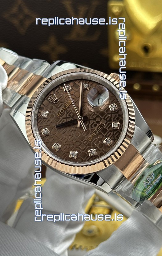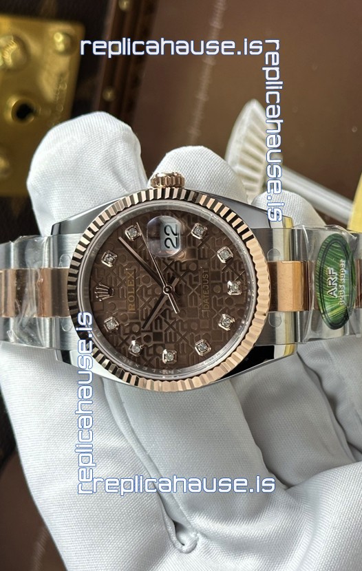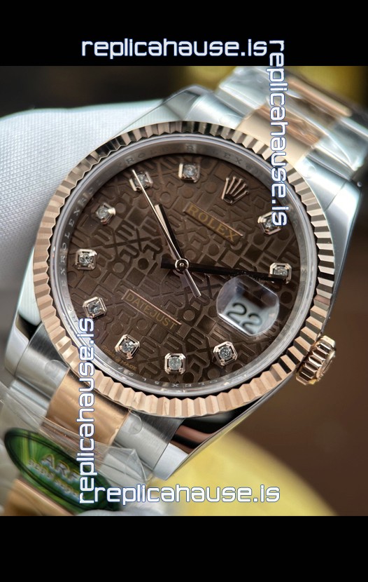 Rolex Datejust Super Clone Cal.3235 Brown Computer Dial 2 Tone Rose Gold Casing Watch 36MM