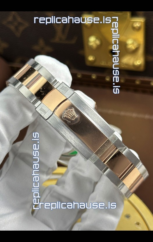 18K Rose Gold Plating Two Tone 904L Stainless Steel Two Tone Strap with New Style Rolesor Deployant Buckle, End links match up Flush with the Case. - A Much Improved Datejust Strap Version