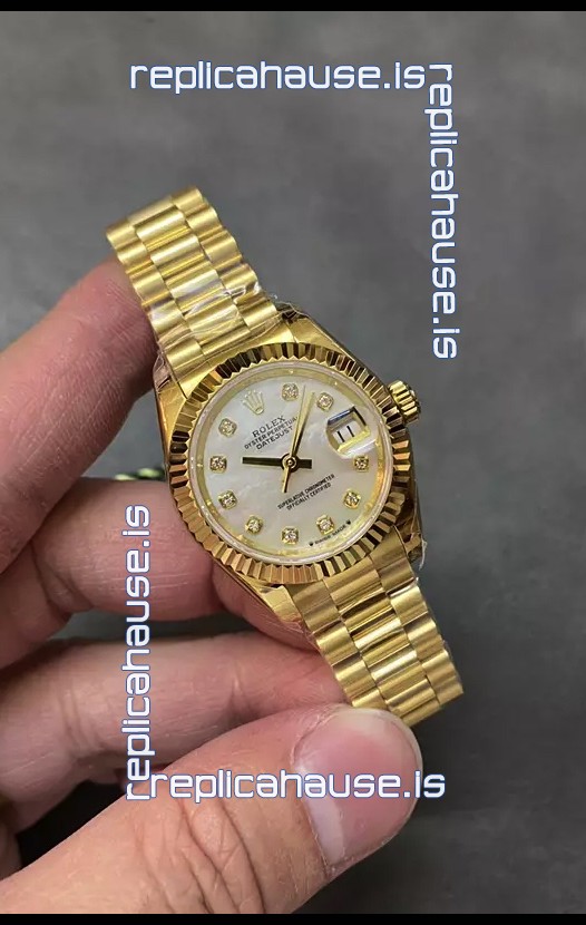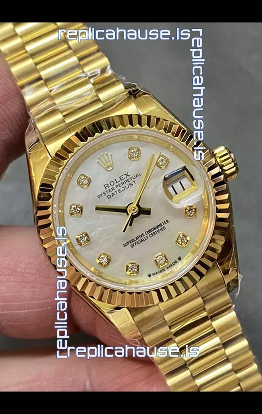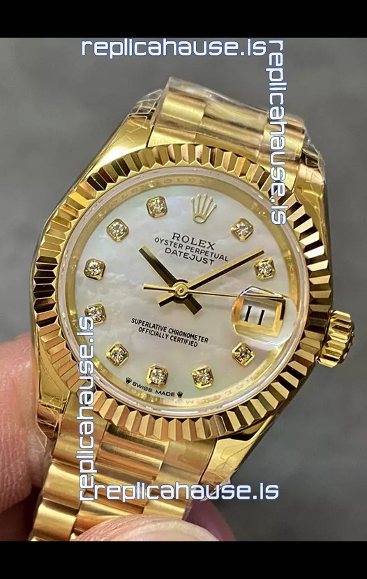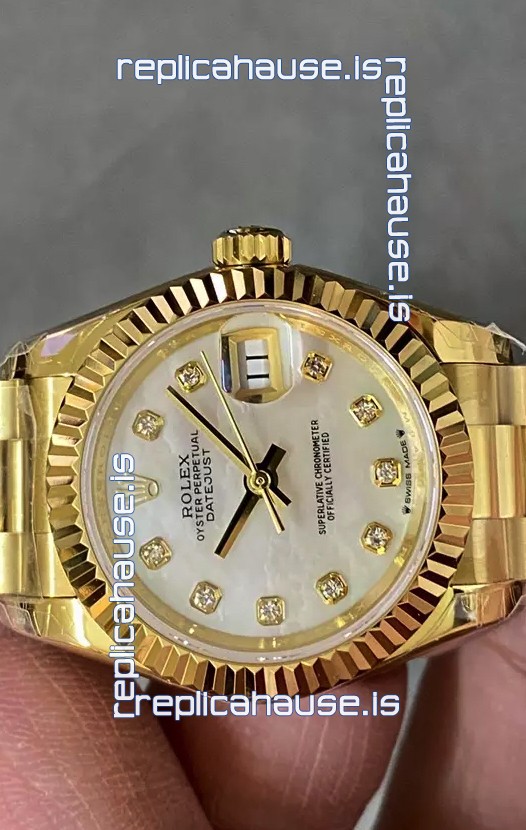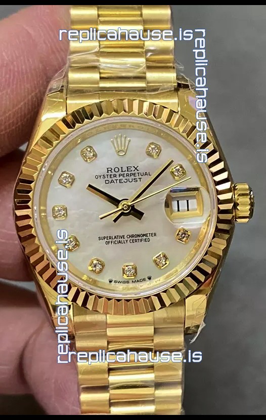 Rolex Datejust Super Clone Pearl Dial Yellow Gold Casing Watch 28MM