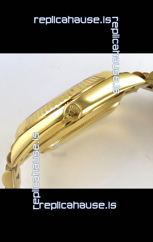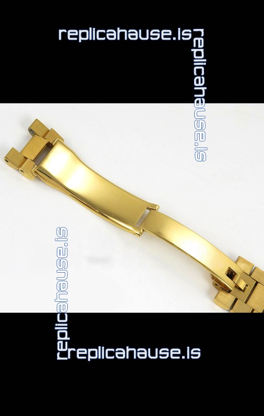 18K Yellow Gold Plating on 904L Stainless Steel New Design President Strap with Folding Clasps complete with Rolex Markings and Engravings