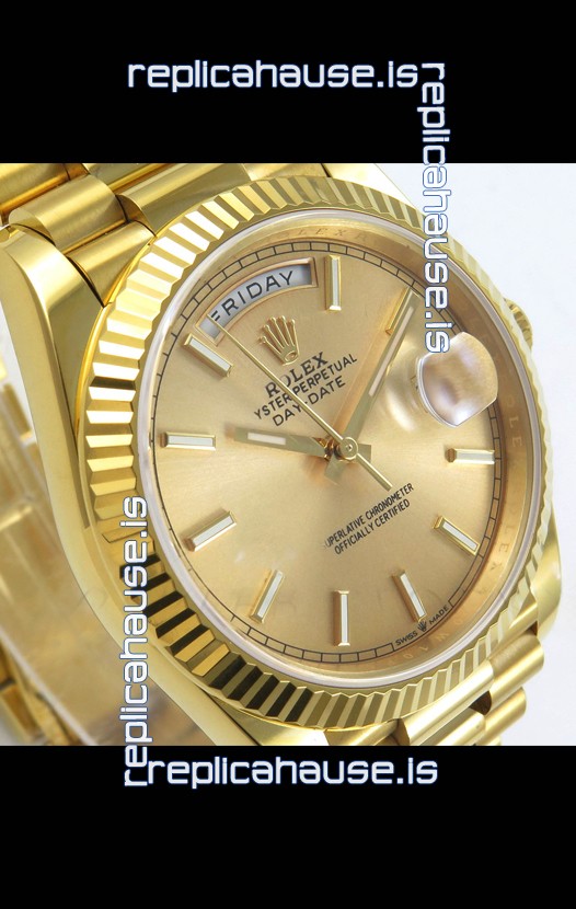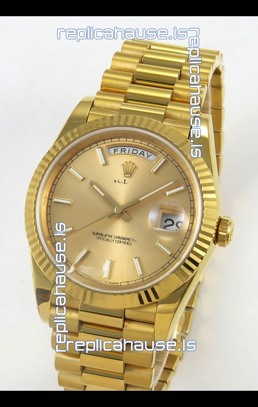 Rolex Day Date Super Clone Gold Dial 40MM 220 Grams Swiss Replica watch