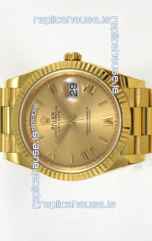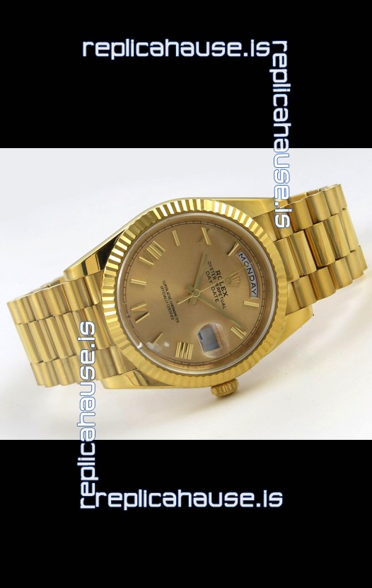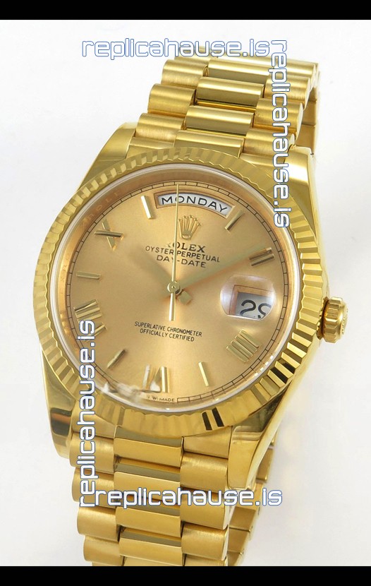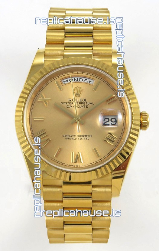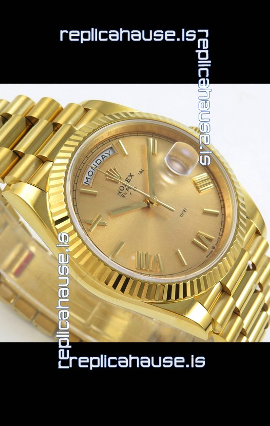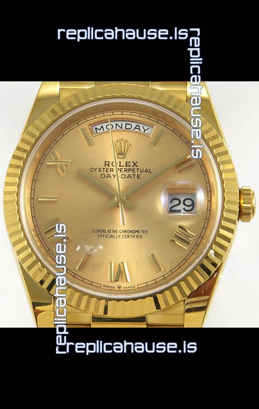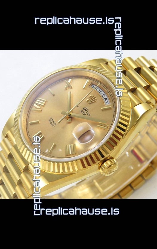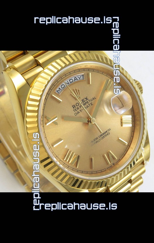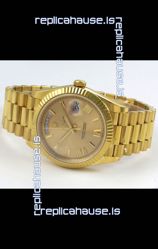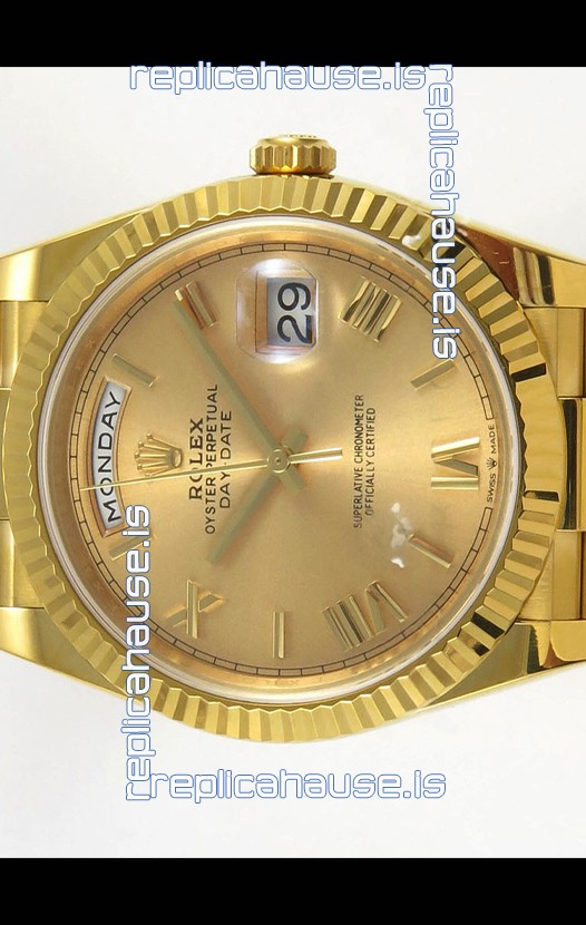 Rolex Day Date Super Clone Gold Roman Dial 40MM 220 Grams Swiss Replica watch