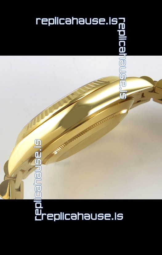 18K Yellow Gold Plating on 904L Stainless Steel New Design President Strap with Folding Clasps complete with Rolex Markings and Engravings