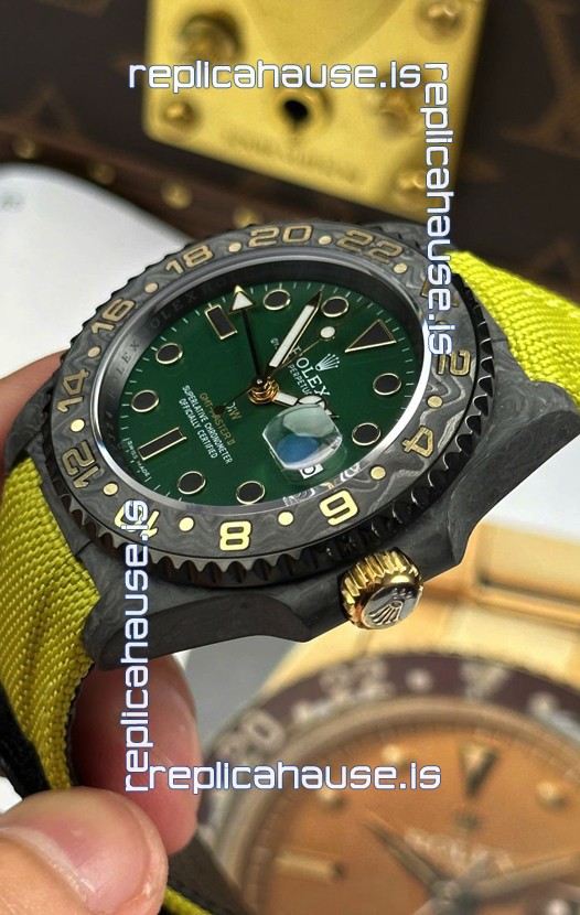Rolex GMT Masters DiW Desert Carbon Casing Swiss Replica Watch Green Dial
