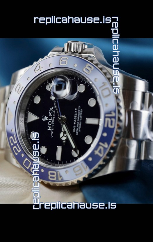 The Best Rolex GMT Model Replicated up to Date. The First Rolex model to adopt a 904L Steel on Casing and Strap which is the same steel used by Rolex.