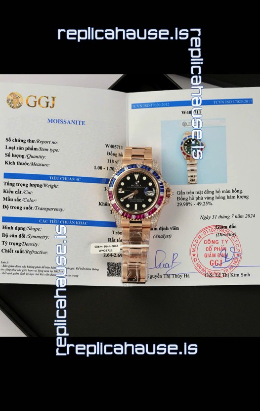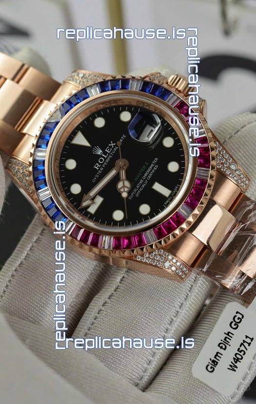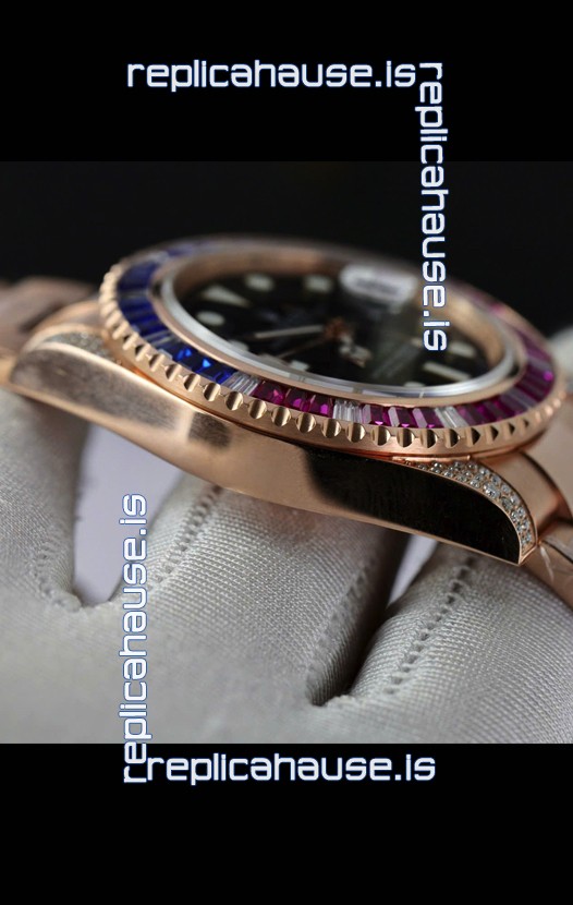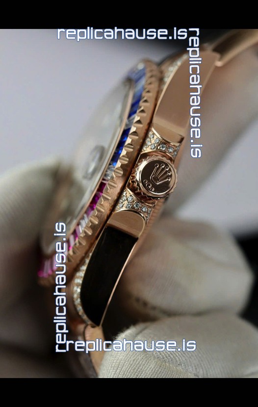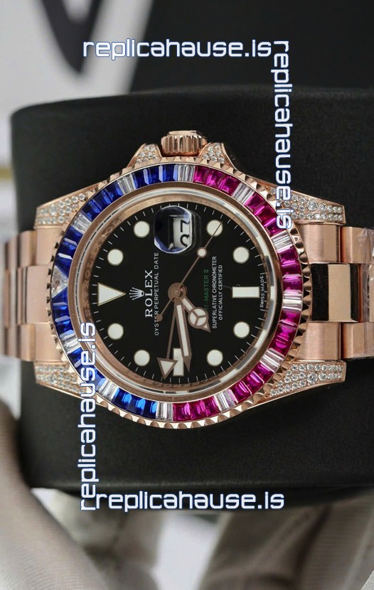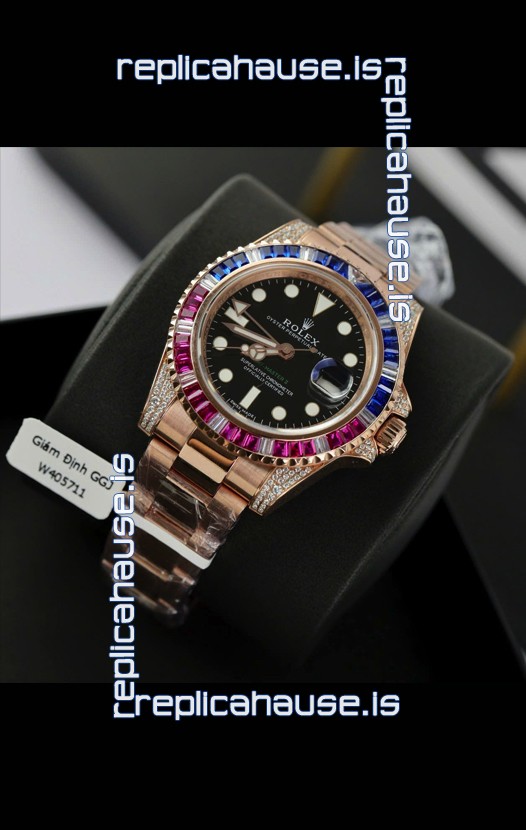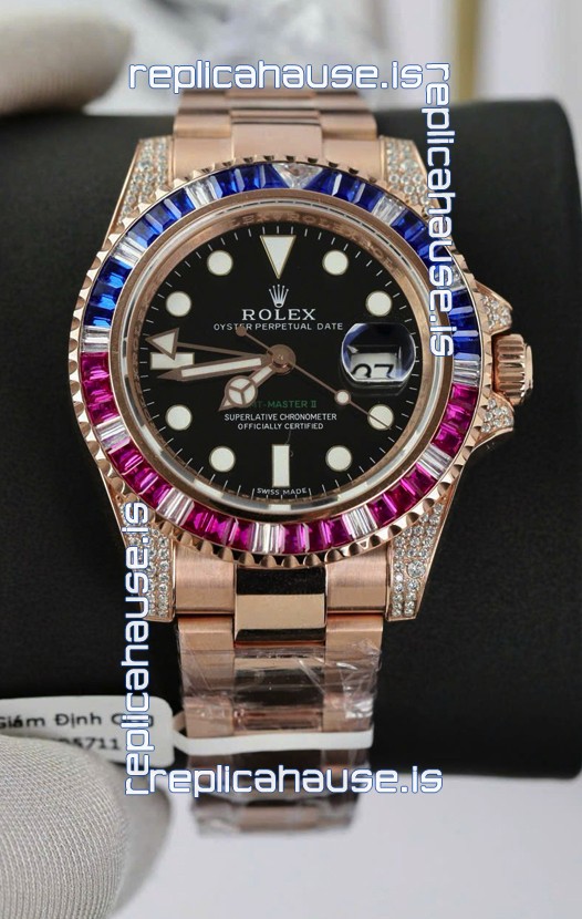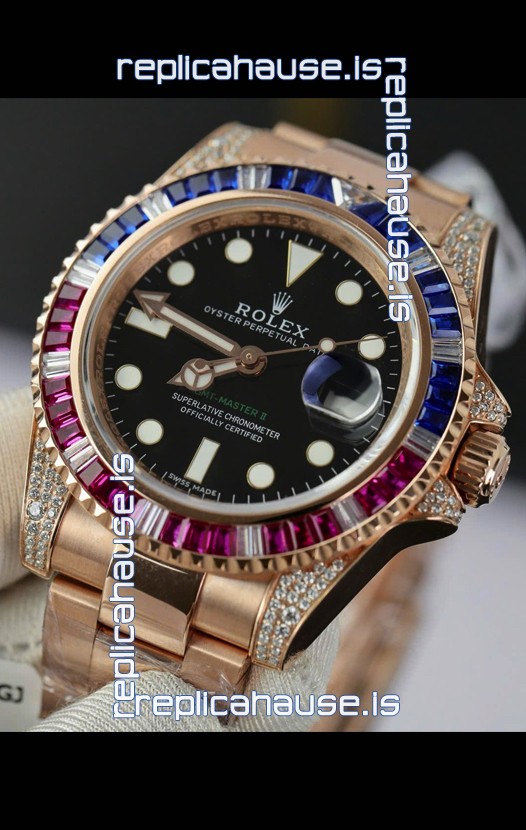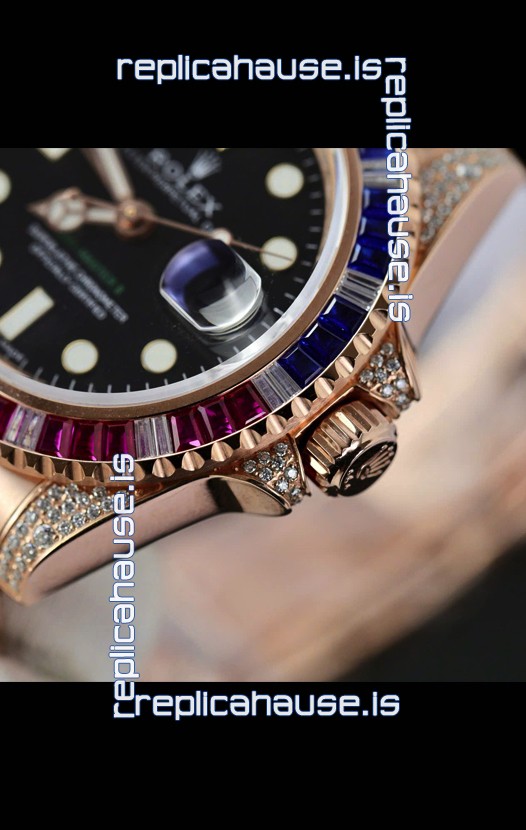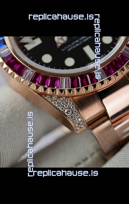 Rolex GMT Masters Super Clone Diamonds Swiss watch with Rose Gold 904L Case - 1:1 Mirror Quality