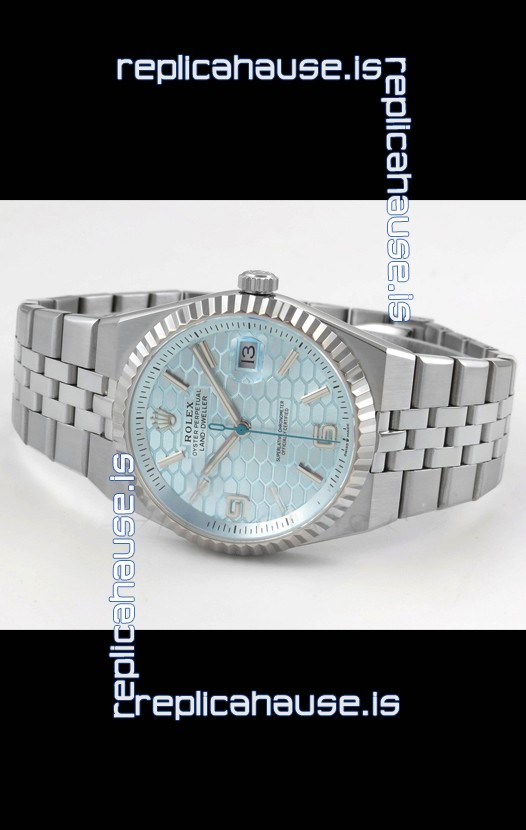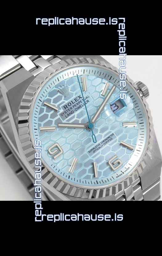 You're reviewing: Rolex Land-Dweller 127336 Ice Blue Honeycomb 40MM Swiss Replica Watch