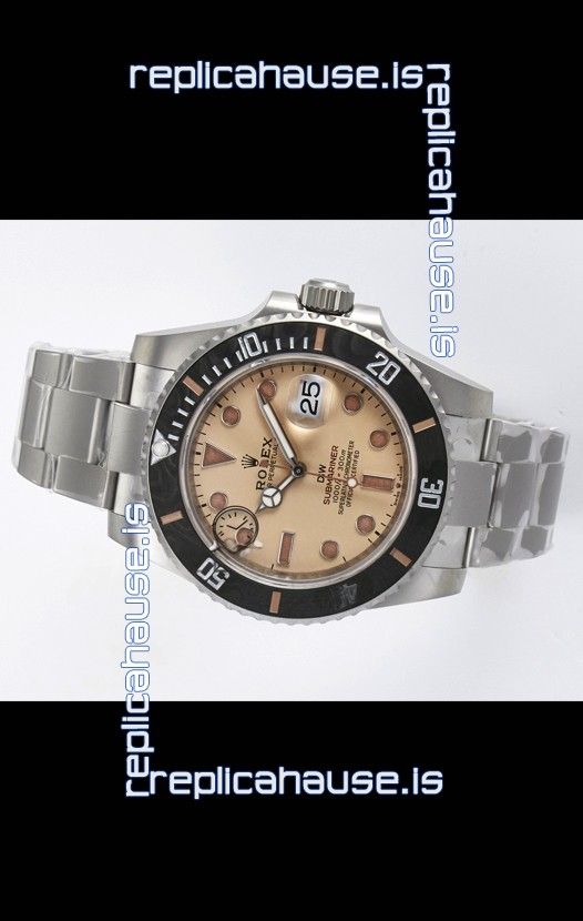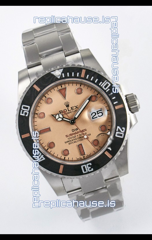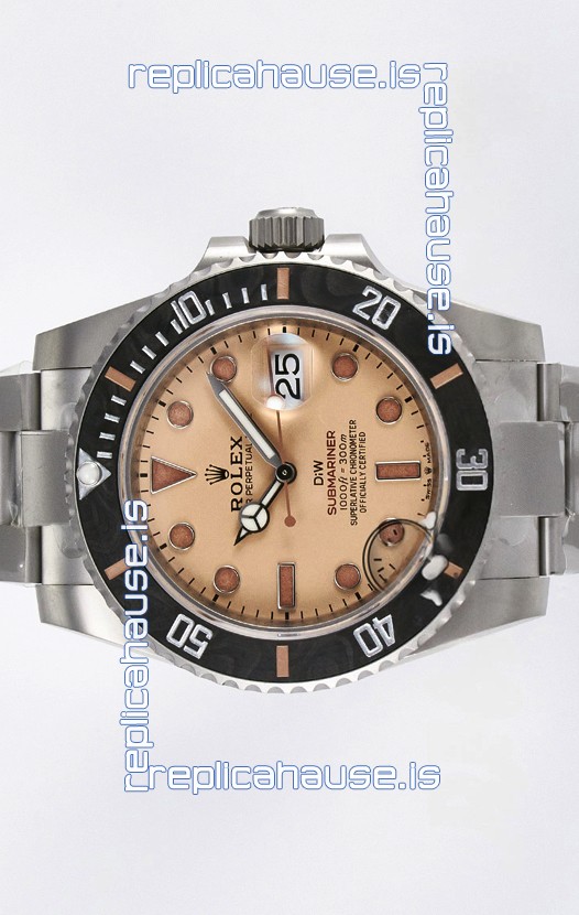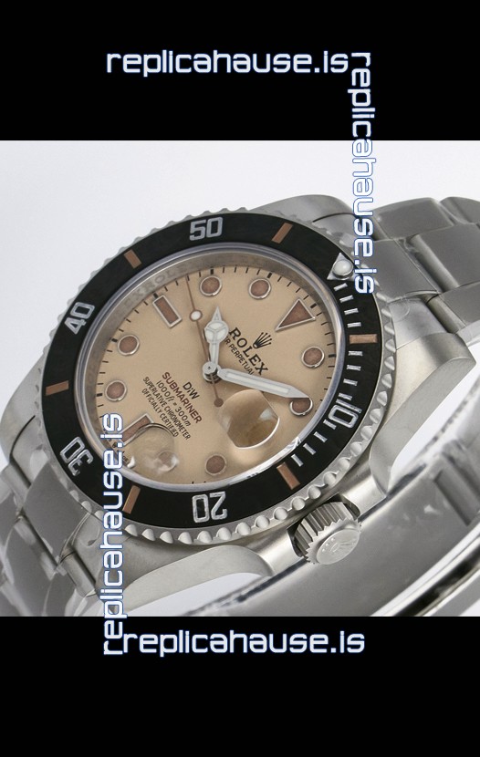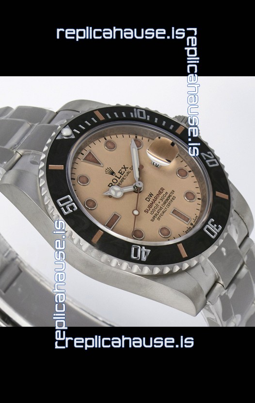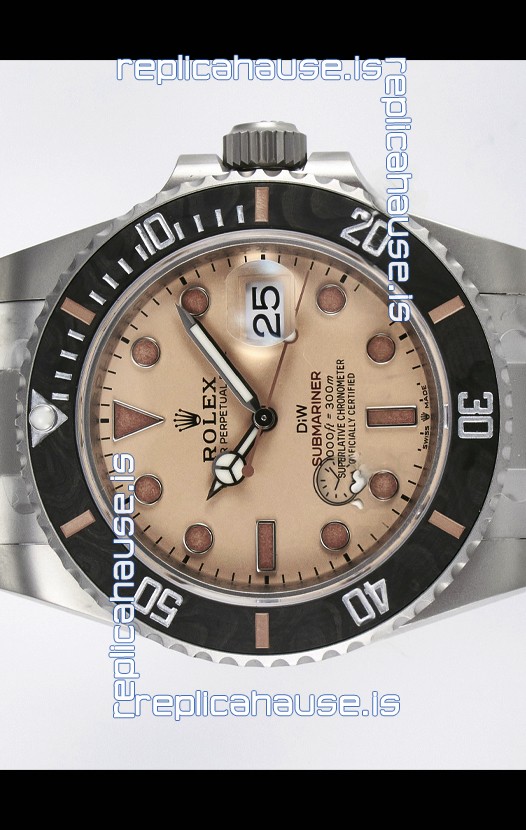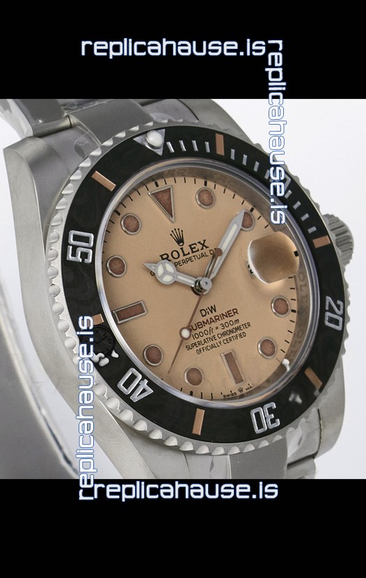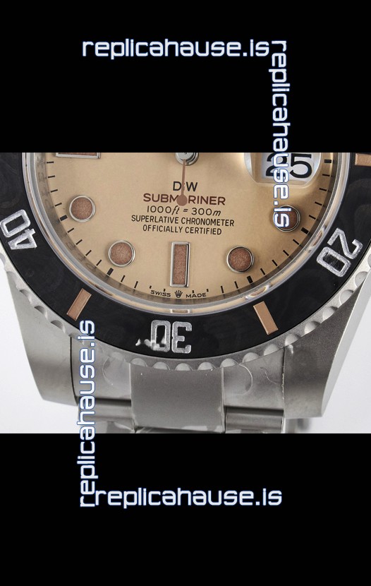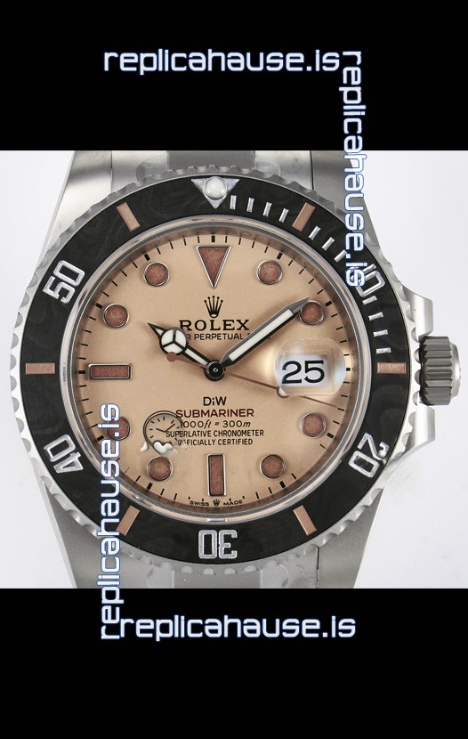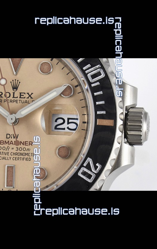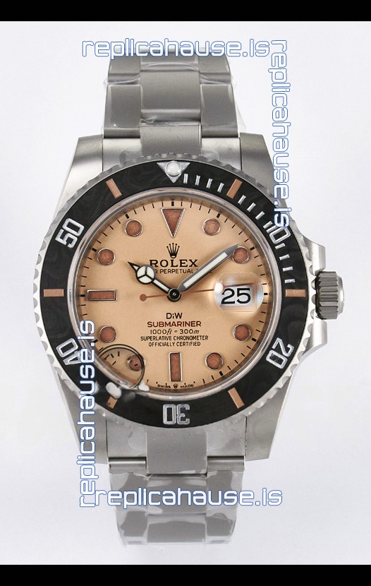 Rolex Submariner DiW Sandblasted Steel Casing Carbon Fiber Bezel Watch Beige Dial
