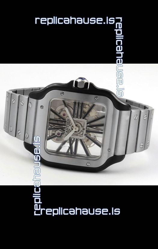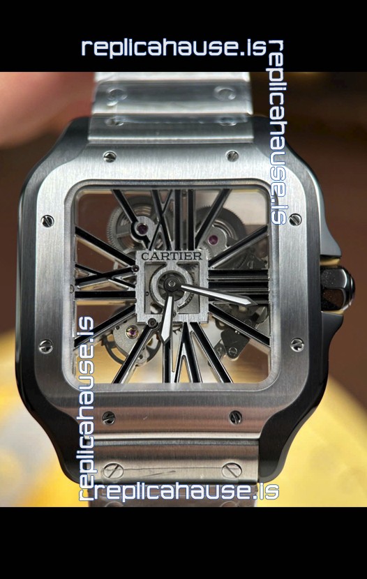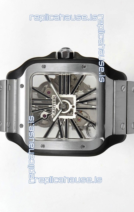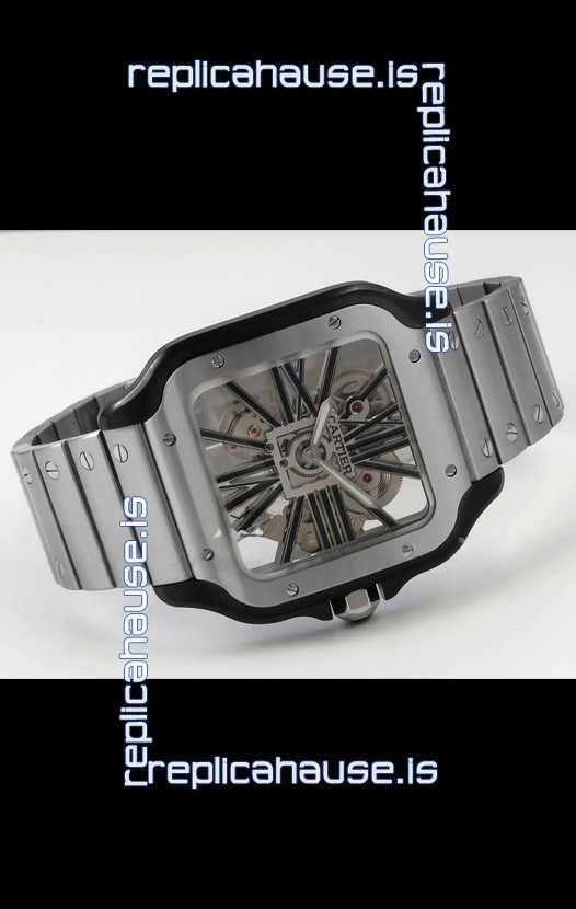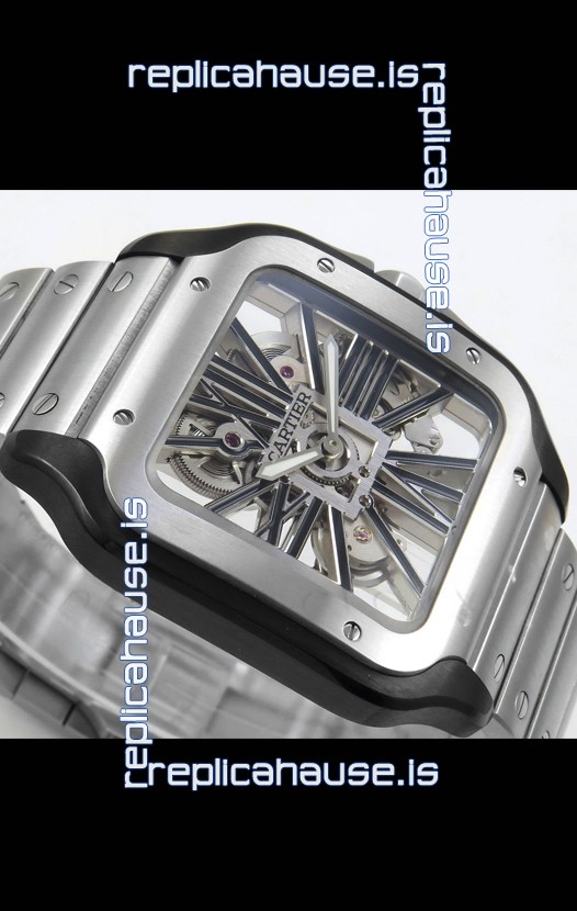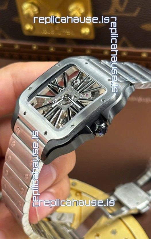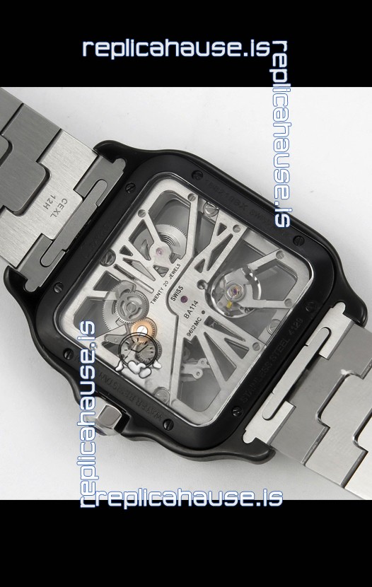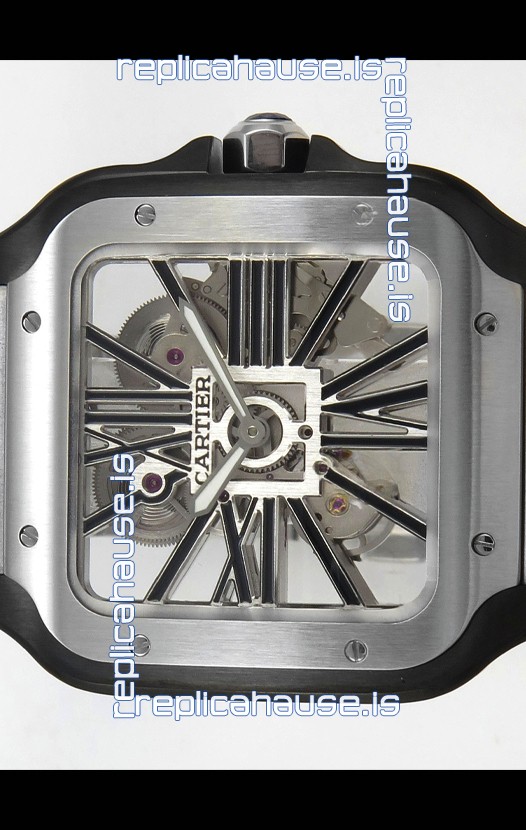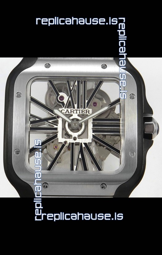 You're reviewing: Santos De Cartier Super Clone Watch in Skeleton Dial Brushed DLC Coated Steel Casing Watch