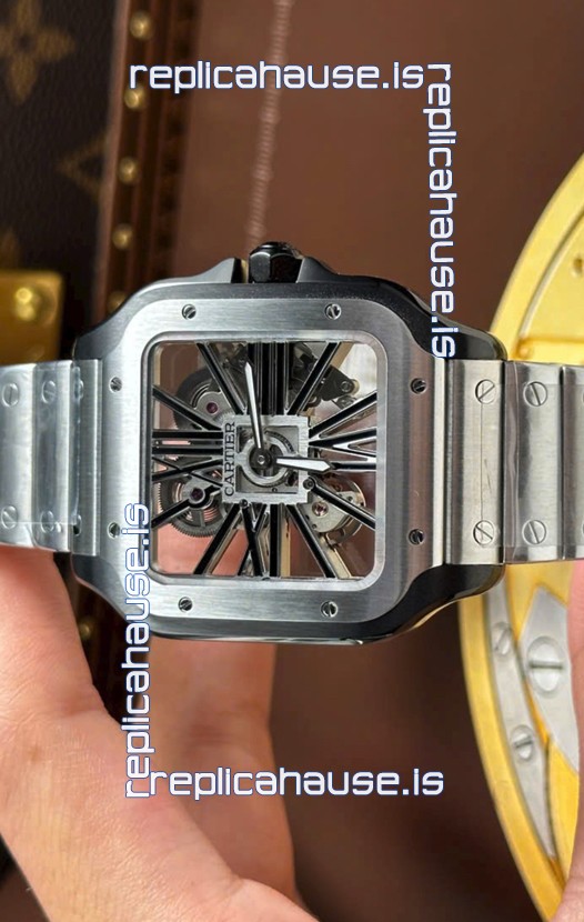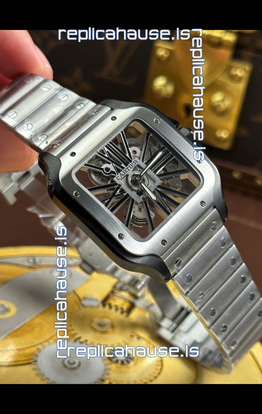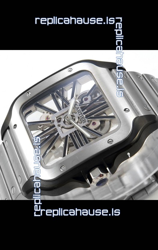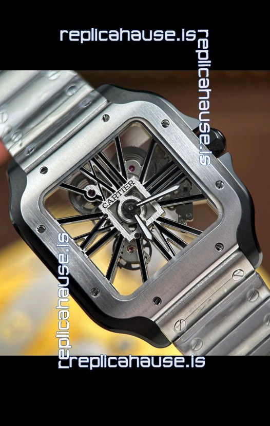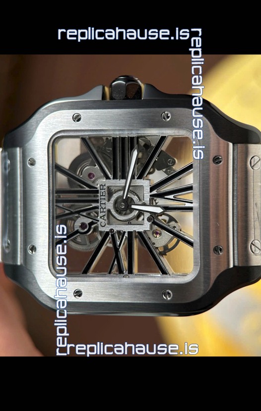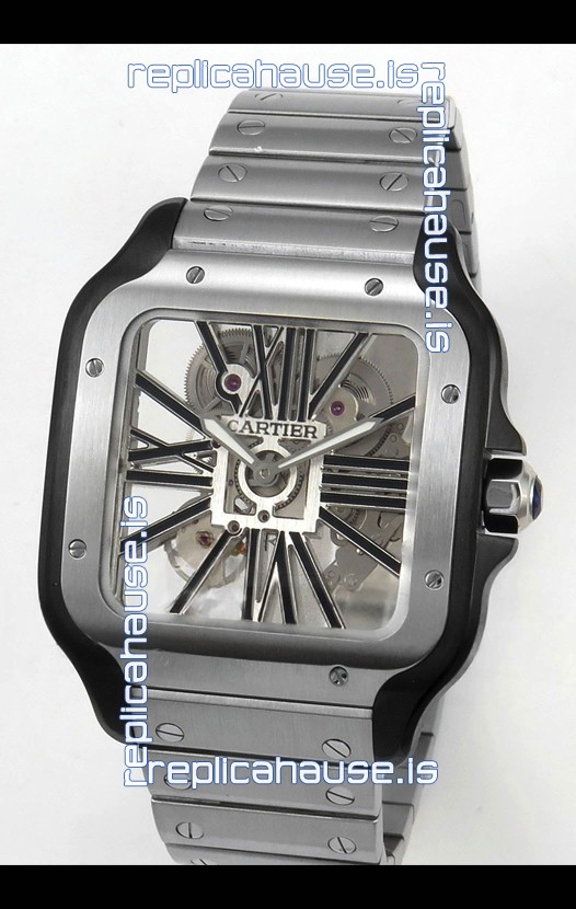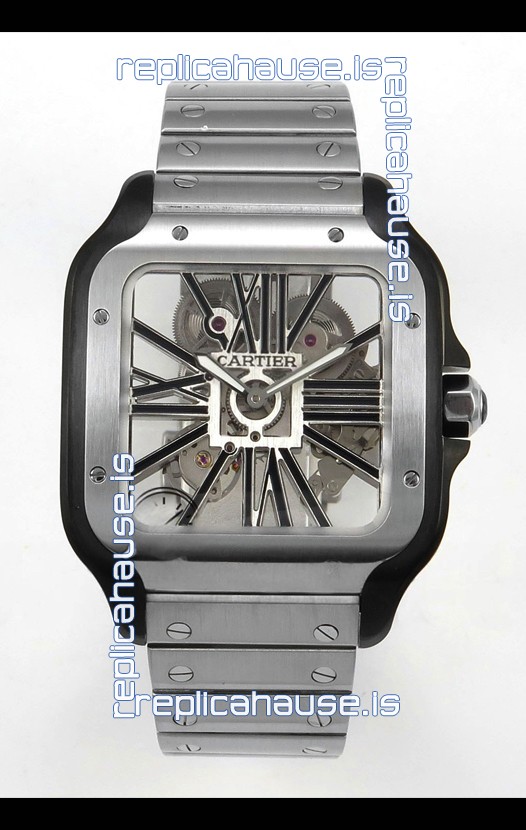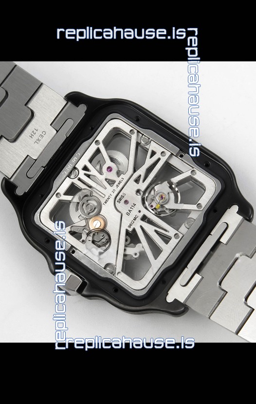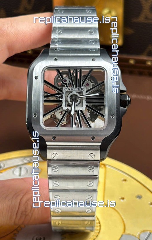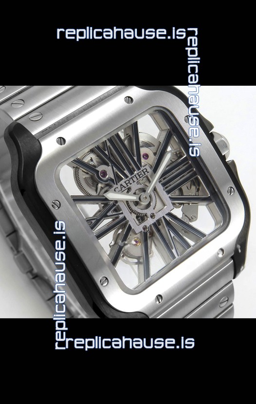 You're reviewing: Santos De Cartier Super Clone Watch in Skeleton Dial Brushed DLC Coated Steel Casing Watch
