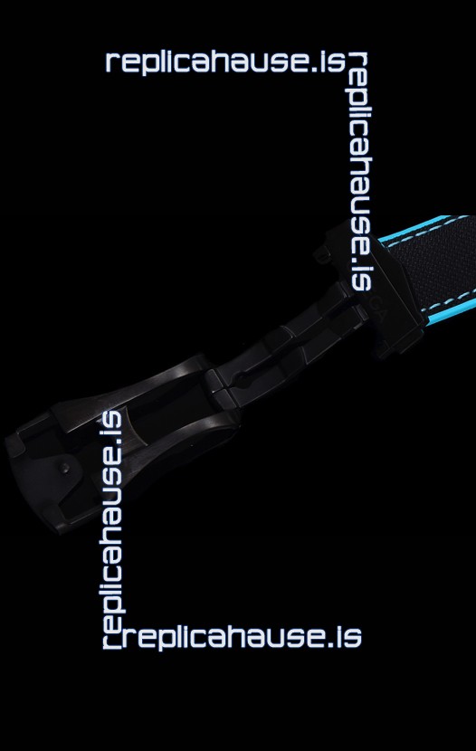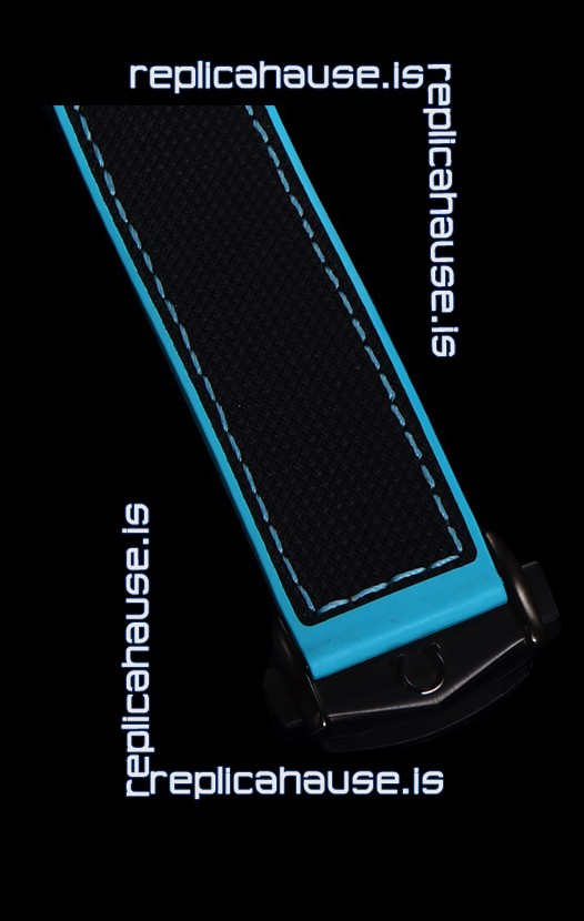 Black Rubber Strap with Omega Styled Folding Clasps complete with Omega Markings and Engravings