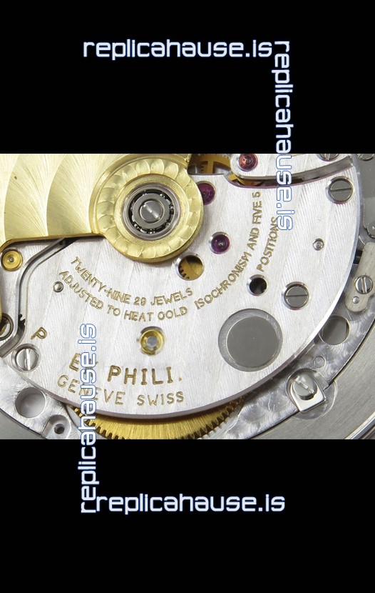 Genuine Swiss 9015 Movement assembled to Resemble the Authentic Patek Philippe PP 324 CS Calibre Style Movement. Updated Rotor, Bridged and Engravings on Movement.