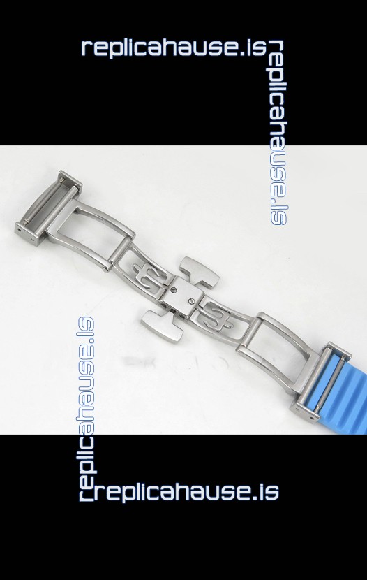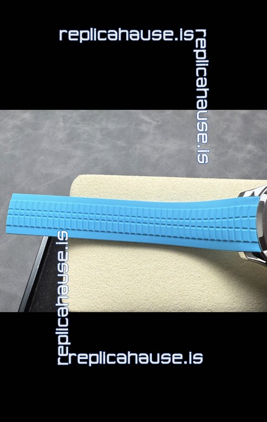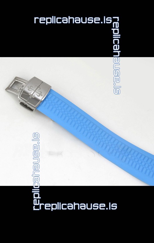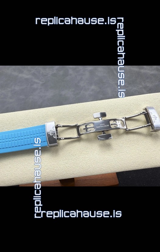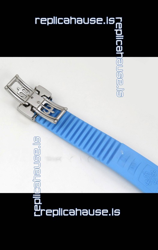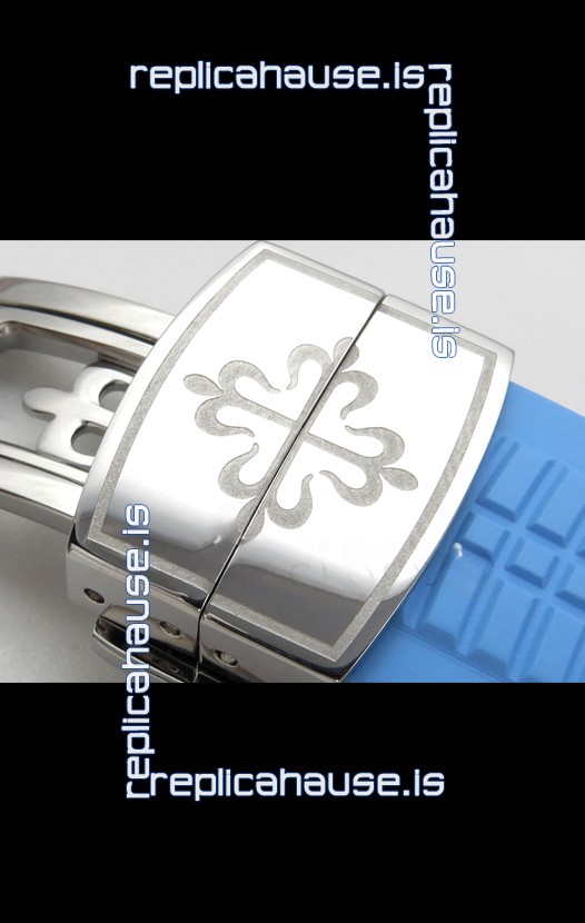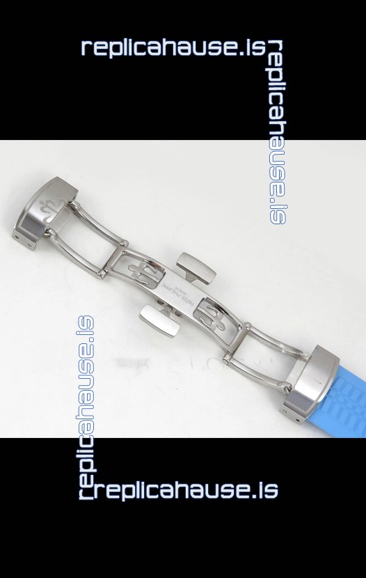 Curved Rubber Strap with Steel Folding Clasp complete with Patek Philippe Markings. A Highly Updated Clasps for this series with much more accurate markings/engravings.
