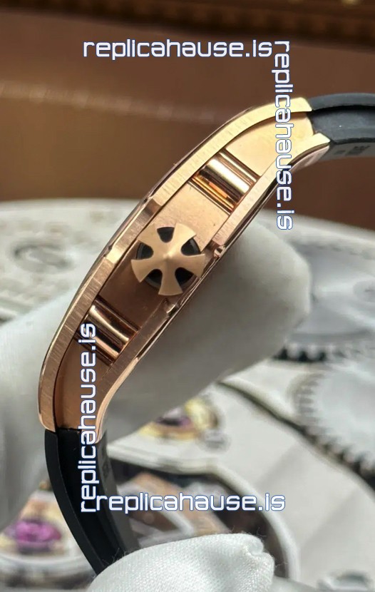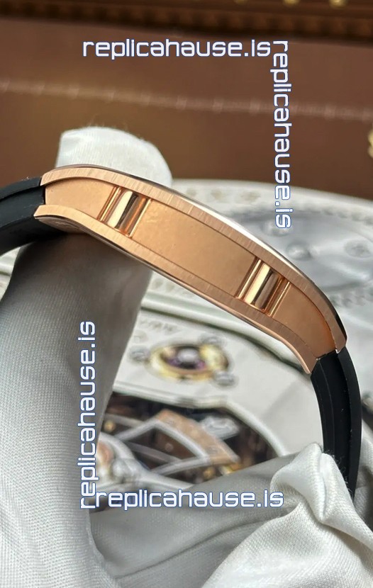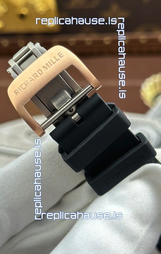 Black Rubber Strap with Folding Clasp with Rose Gold Coating Complete with Richard Mille Markings and Engravings