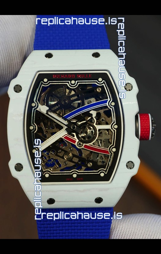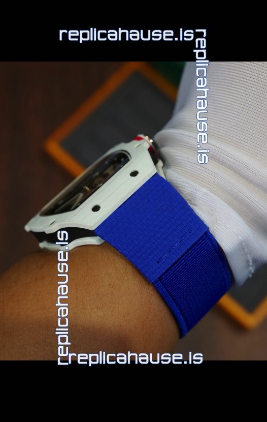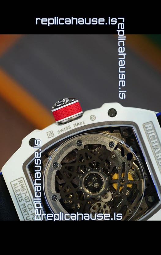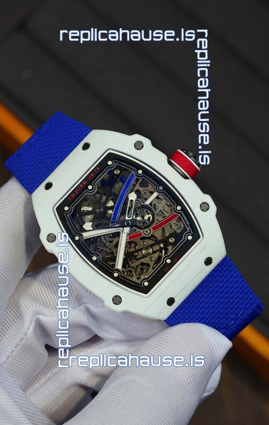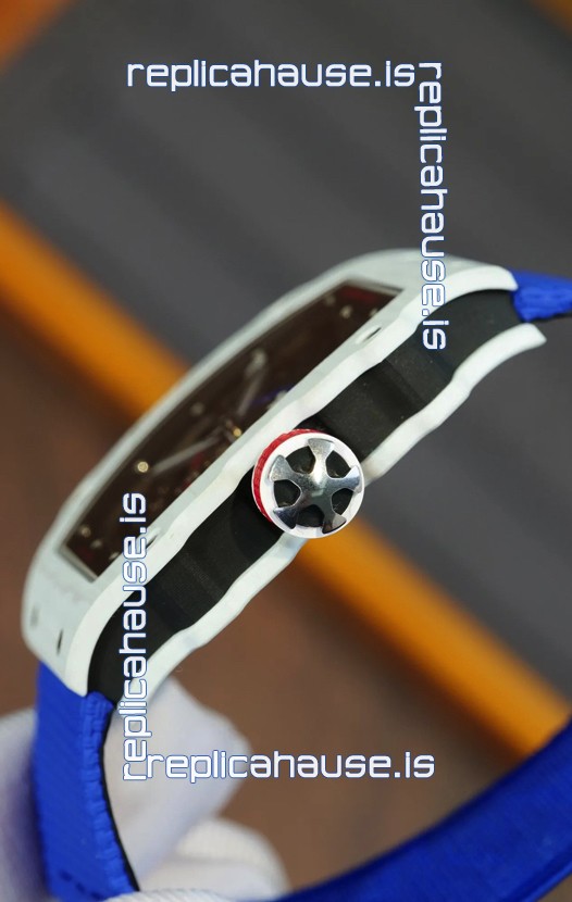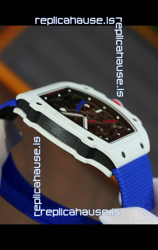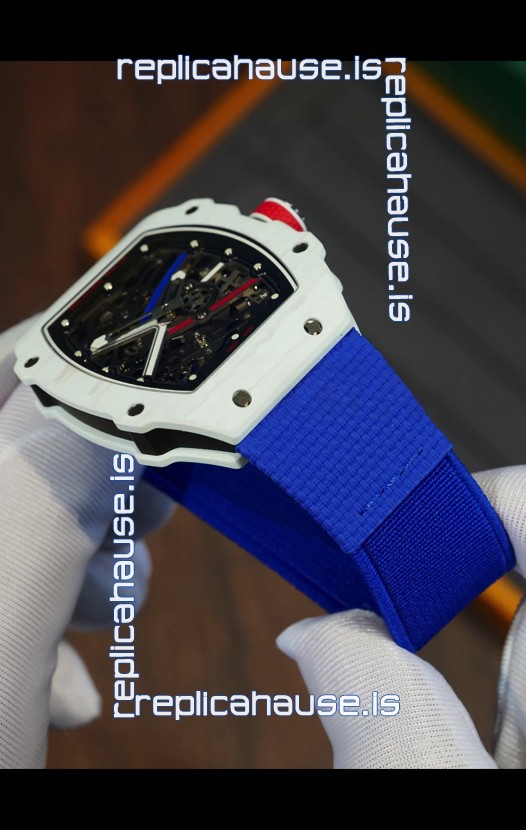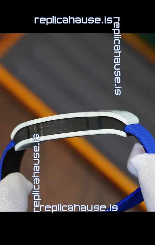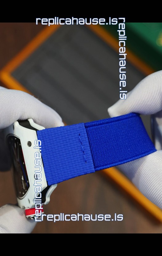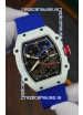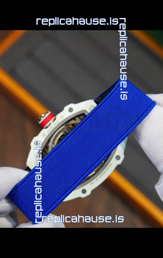Richard Mille Super Clone RM67-02 Alexis Pinturault White Quartz TPT 37 Grams Watch Blue Strap