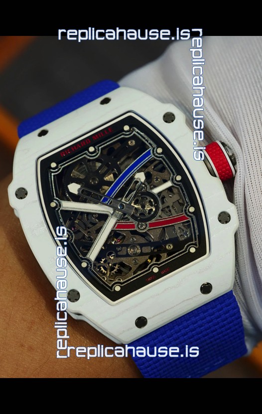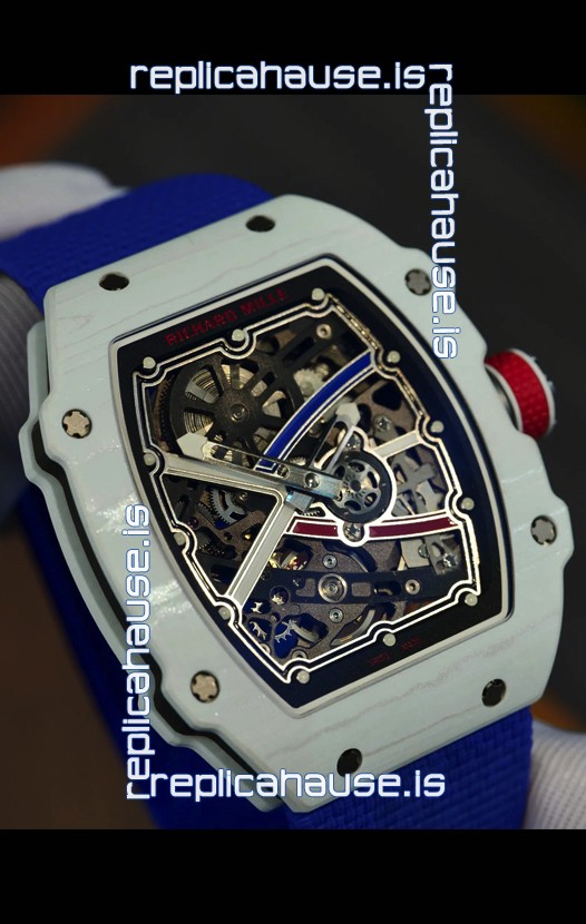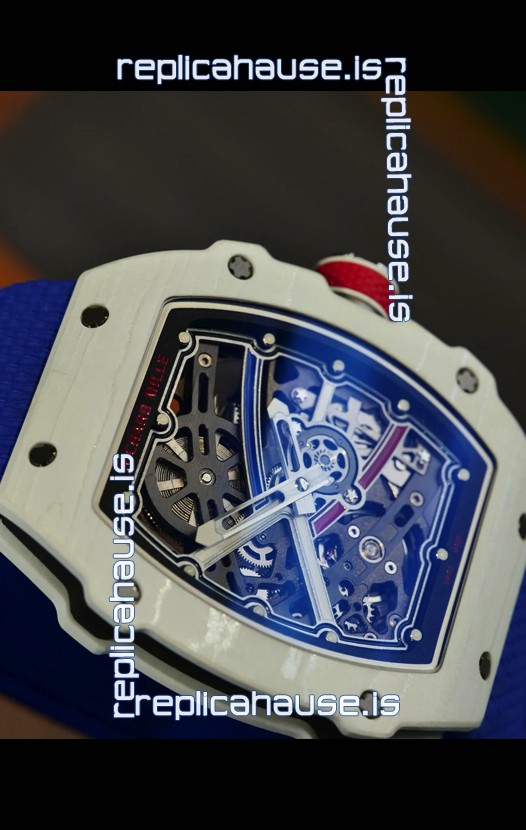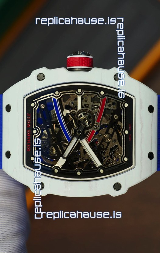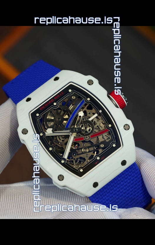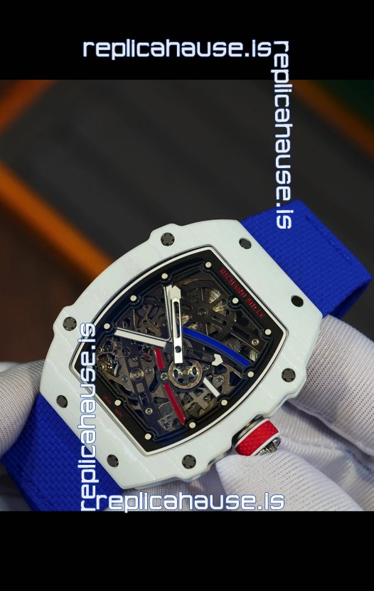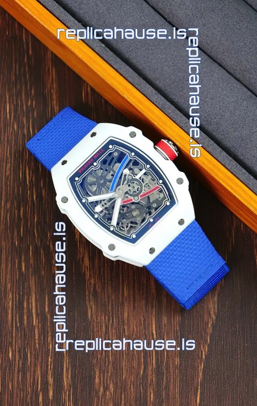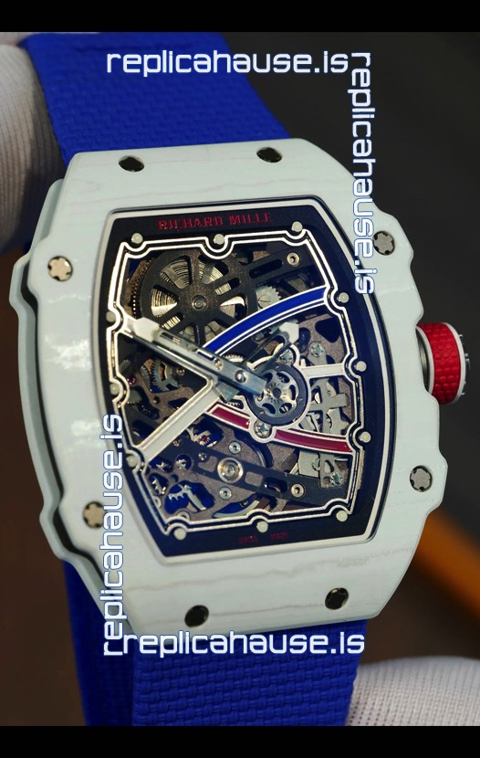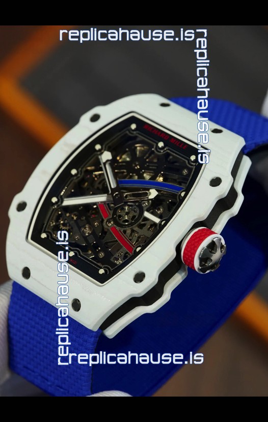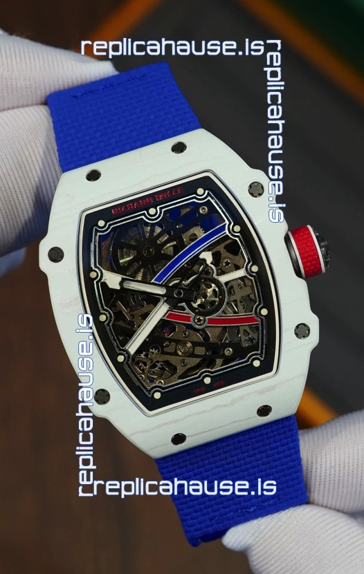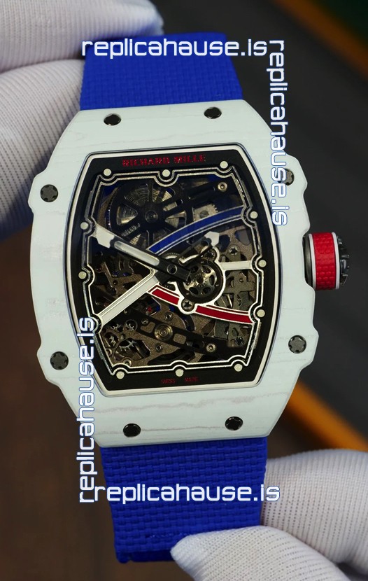 Richard Mille Super Clone RM67-02 Alexis Pinturault White Quartz TPT 37 Grams Watch Blue Strap