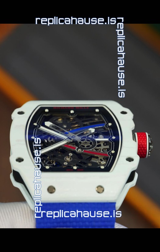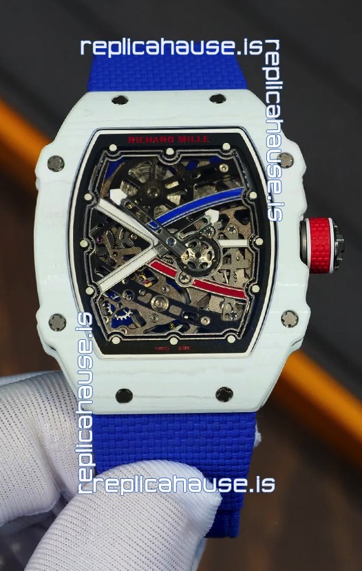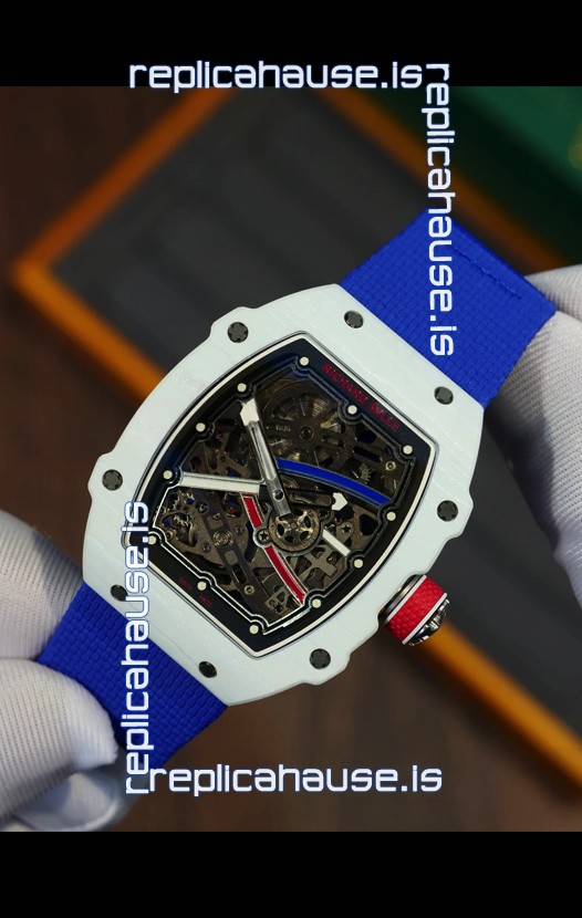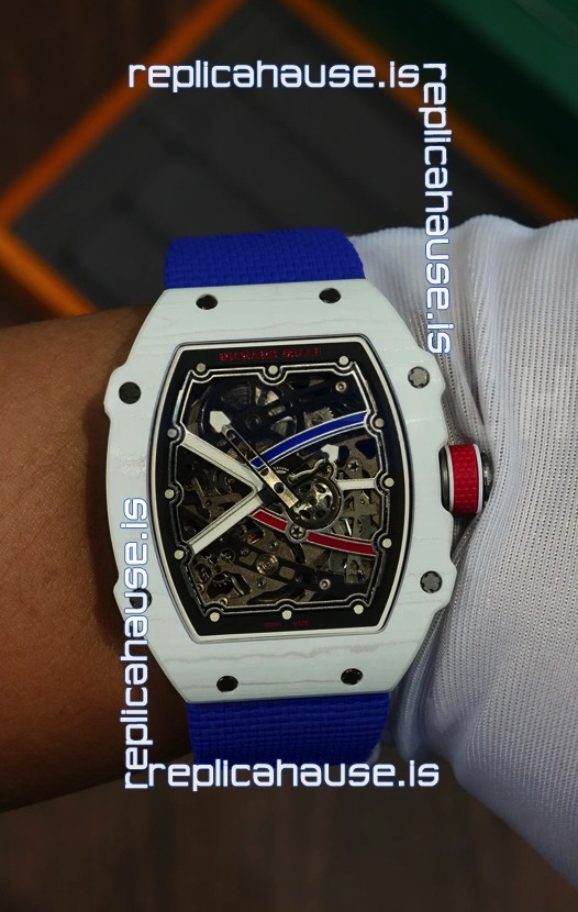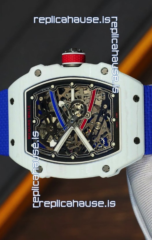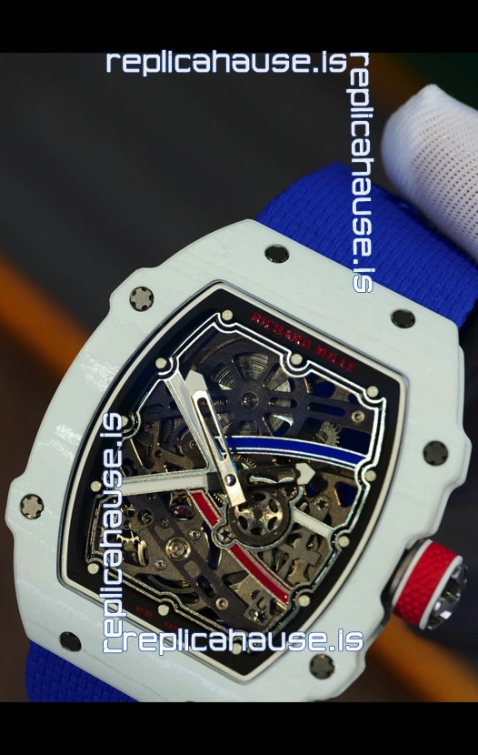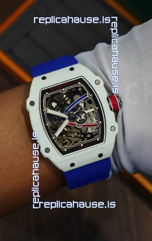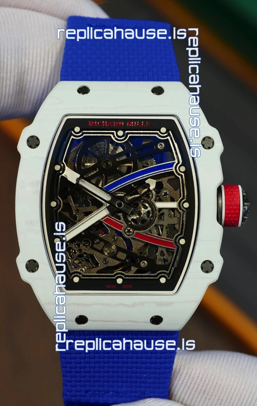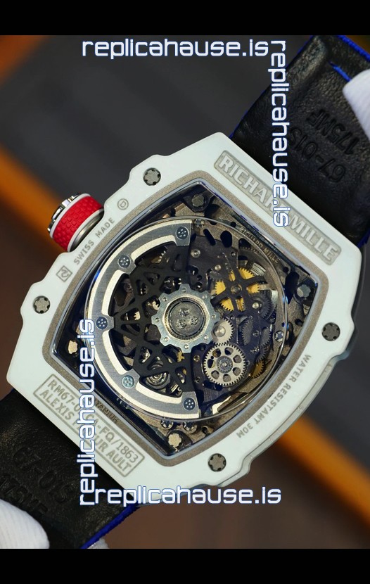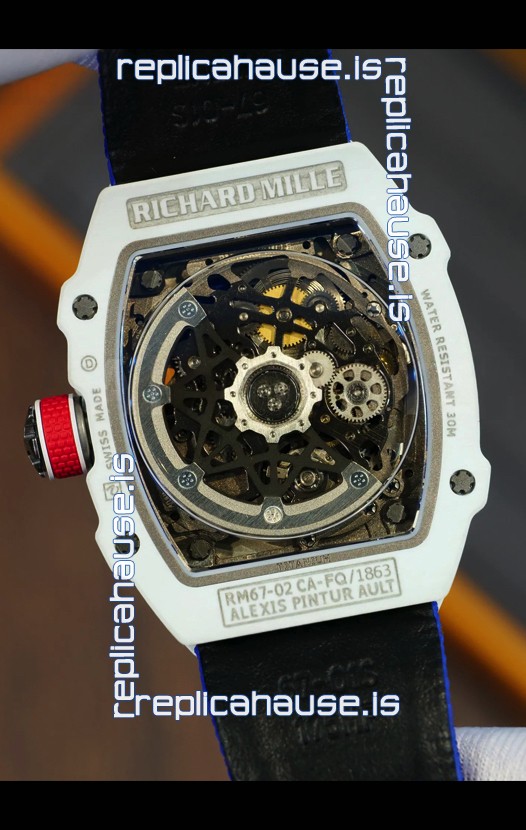 Richard Mille Super Clone RM67-02 Alexis Pinturault White Quartz TPT 37 Grams Watch Blue Strap