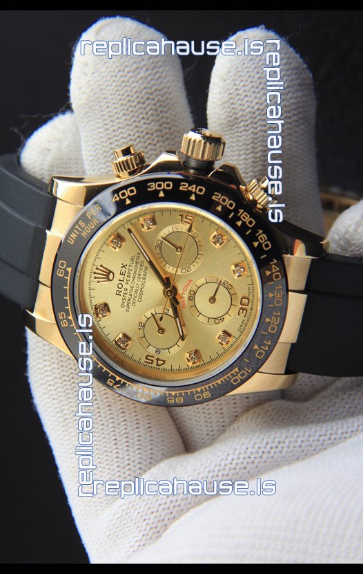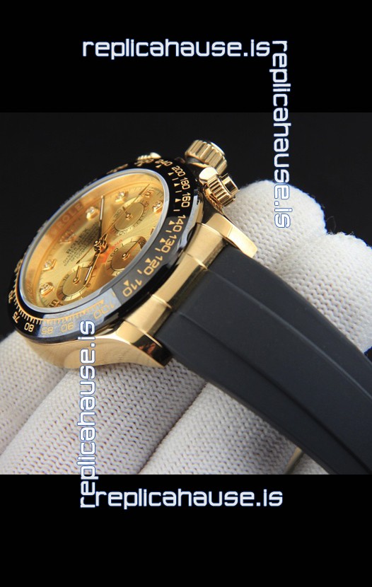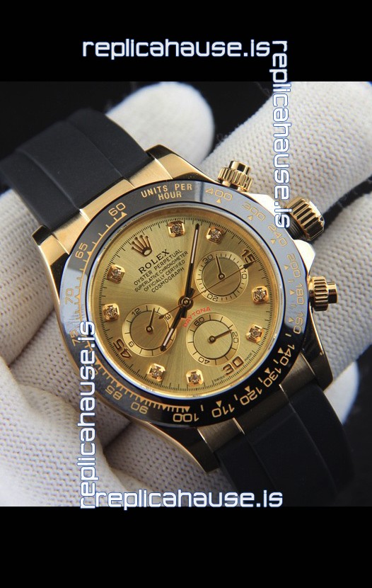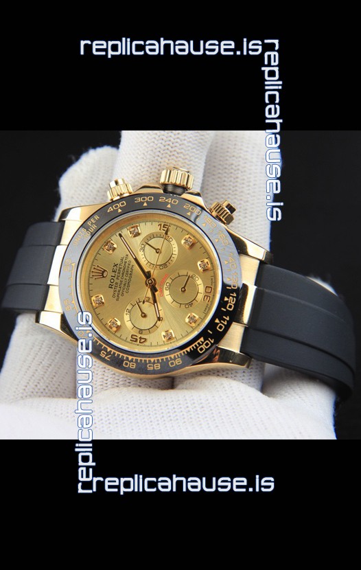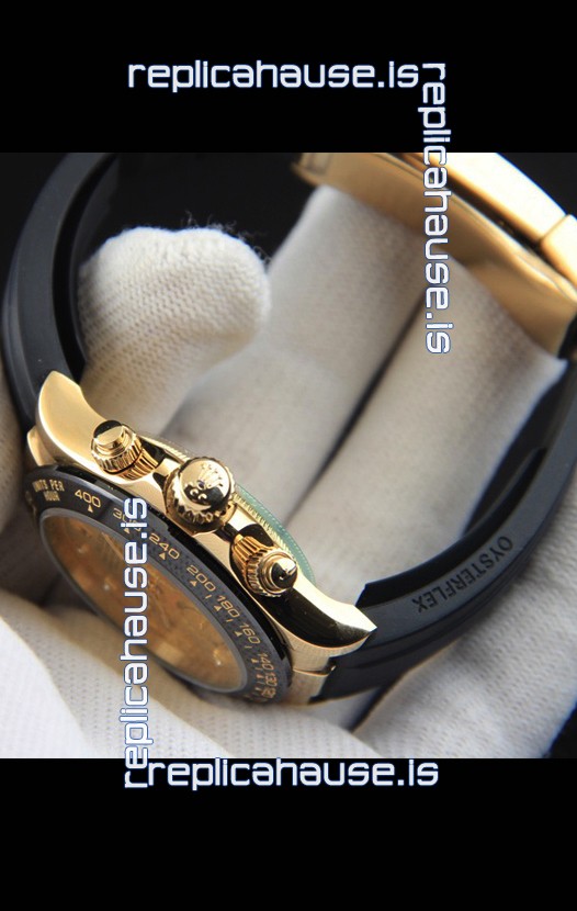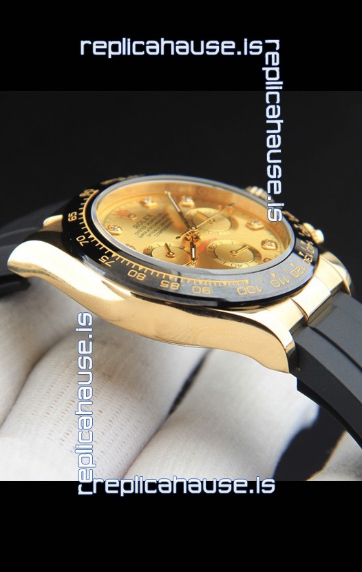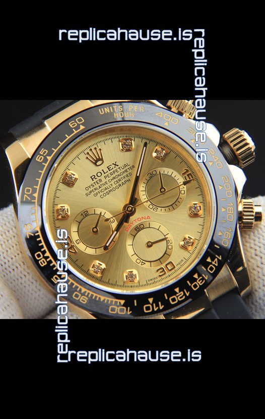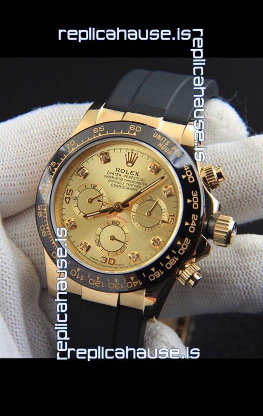 You're reviewing: Rolex Daytona Japanese Movement Gold Casing Replica Watch in Gold Dial