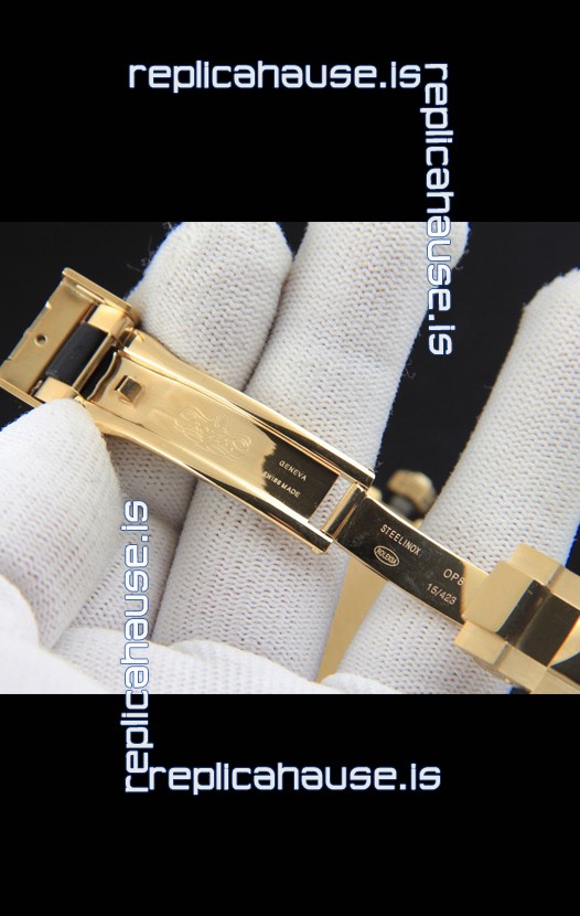 18K Gold Plating on 904L Solid Stainless Steel Case with Rolex Markings and Engravings