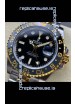 Two Tone Yellow Gold Plating 904L Stainless Steel Case as per the Orginal with Metallic Black/Blue Ceramic Inserts.