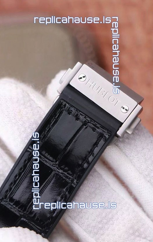 Genuine Rubber Clad strap with Stainless Steel Clasp complete with Hublot Markings and Engravings.