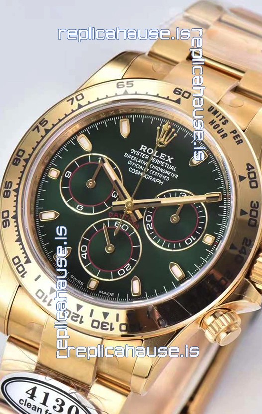 Overall Rating This watch is nothing short of amazing! The gold finish is flawless, and the dial design is simply beautiful. The weight and feel are exactly like an authentic Rolex, making it a fantastic purchase. The Caliber 4130 movement runs perfectly, ensuring smooth chronograph functions and precise timekeeping. I get compliments every time I wear it, and even watch enthusiasts have trouble telling it’s a replica. If you want a top-tier watch that looks and feels like the real deal, this is the one! (Posted on 3/12/25)