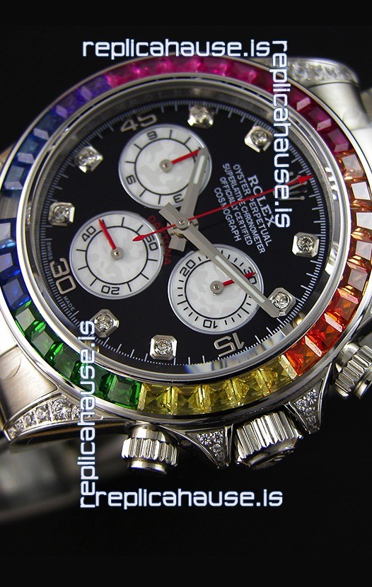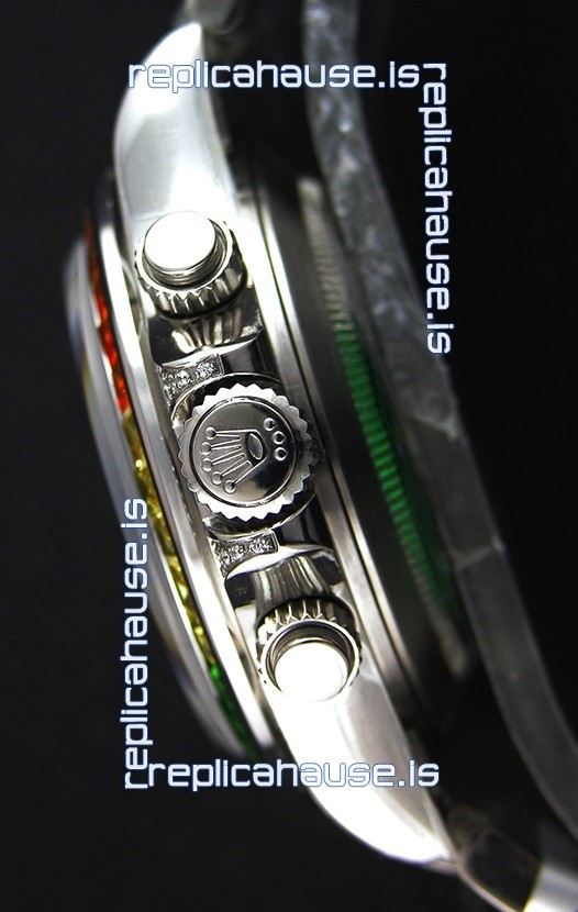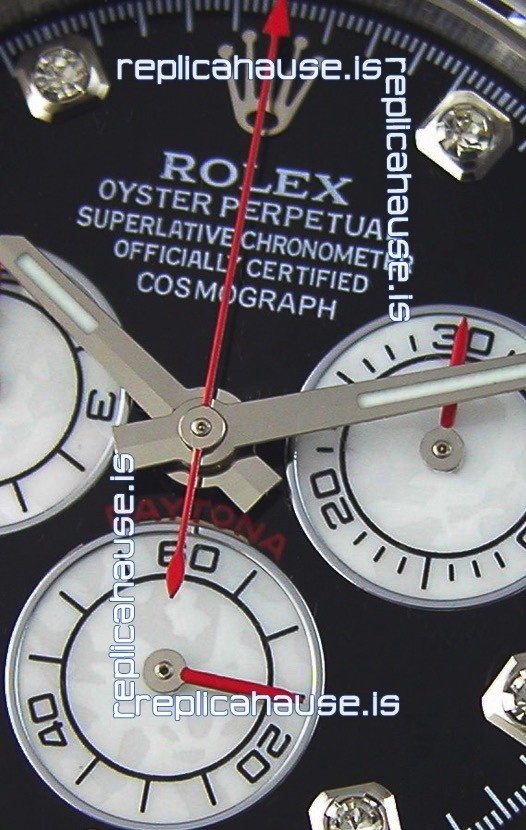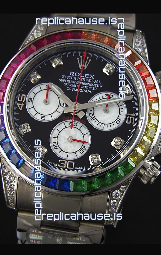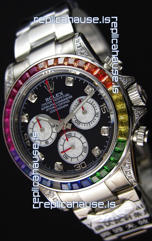 The Best Rolex Daytona Model Replicated up to Date. The First Rolex model to adopt a 904L Steel on Casing and Strap which is the same steel used by Rolex. Compared with an Original Side by Side and there were NO Differences Whatsoever. Complete list of details have been stated below and you will see that tremendous amount of detaiing and work has been put into this edition.