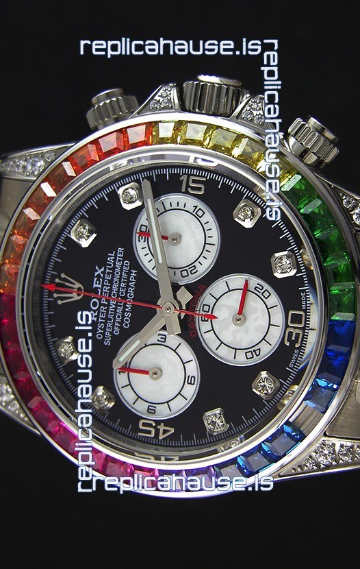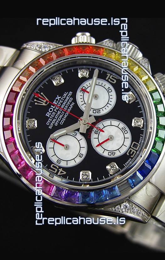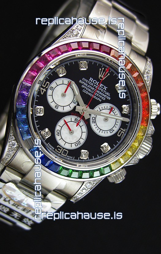 High Quality Cut Multicolored Bezel as per the original, Gemstones coloring is on par with the Originals