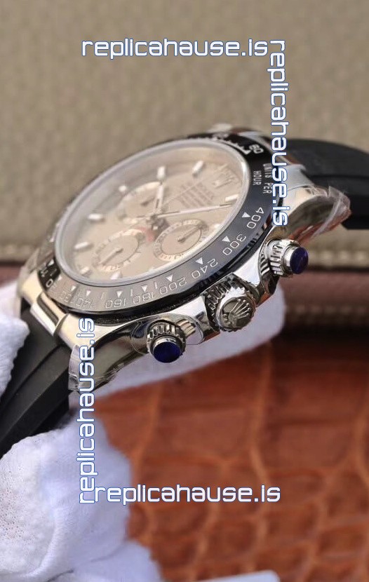 Overall Rating The craftsmanship on this Daytona is unbelievable! Every detail is carefully executed, from the high-polish white gold case to the perfectly aligned subdials. The tachymeter engraving is precise, and the hands glide effortlessly across the dial. The bracelet has a seamless finish, making it feel like a true luxury piece. The movement is incredibly smooth, rivaling even the most high-end timepieces. It’s clear that a lot of effort has gone into making this watch as close to the original as possible. A must-have for any watch enthusiast!