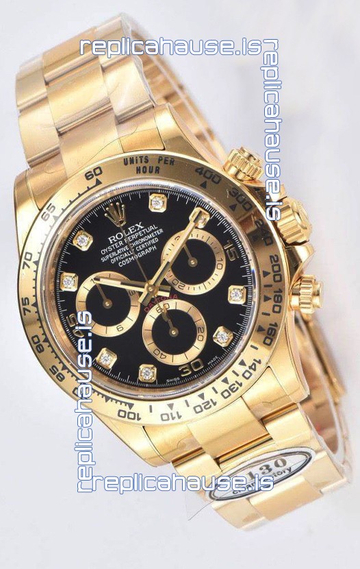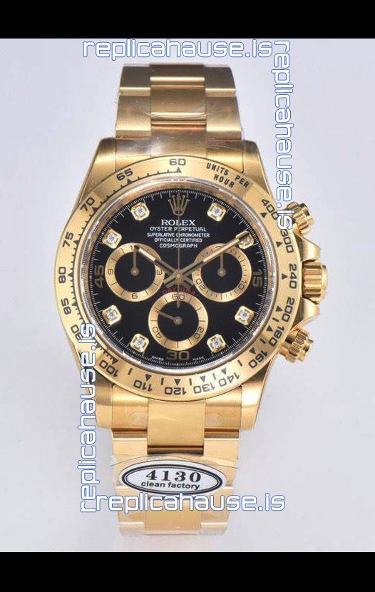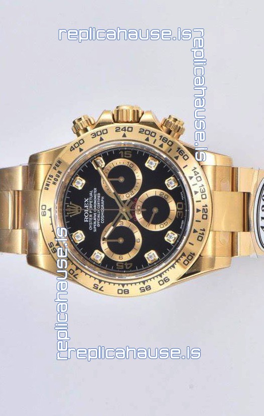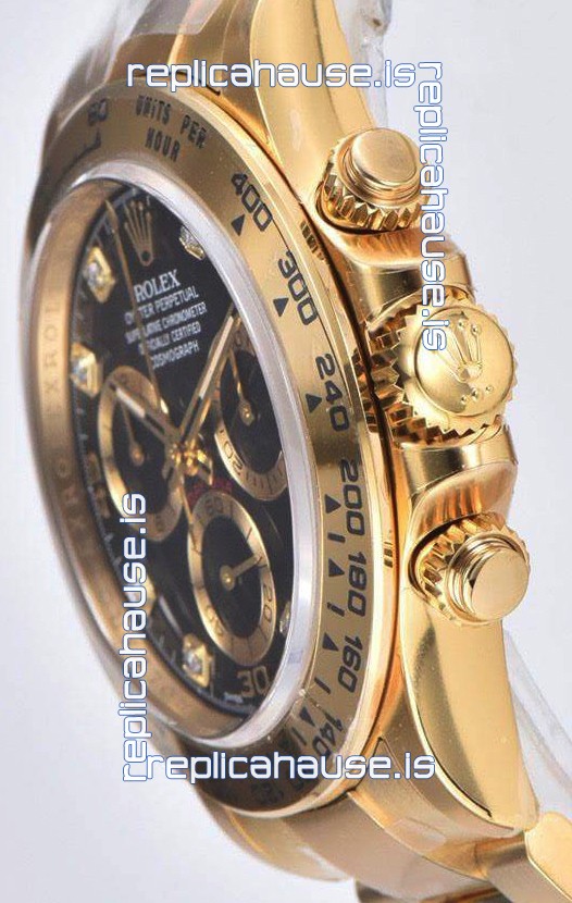 The Best Rolex Daytona Model Replicated up to Date. The First Rolex model to adopt a 904L Steel on Casing and Strap which is the same steel used by Rolex. Compared with an Original Side by Side and there were NO Differences Whatsoever. Complete list of details have been stated below and you will see that tremendous amount of detaiing and work has been put into this edition.