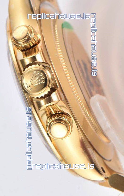 18K Yellow Gold Plating on 904 Solid Stainless Case with Rolex Markings and Engravings like the Authentic.