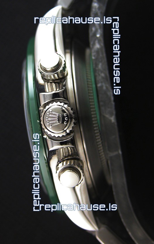 This watch exceeded all my expectations! The white dial with the green ceramic bezel is absolutely stunning and gives off a luxurious feel. The 904L steel construction makes it feel solid, and the attention to detail is remarkable. The Cal. 4130 movement works perfectly, ensuring smooth and accurate timekeeping. The pushers and chronograph functions work flawlessly, just like an original. It’s a watch that looks far more expensive than it is. If you want a high-quality Daytona replica, this is the one! (Posted on 3/20/25)
