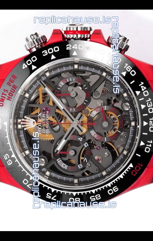 Rolex Daytona Blaken Red Carbon 1:1 Swiss Mirror Replica Skeleton Dial Cal.4130 Movement