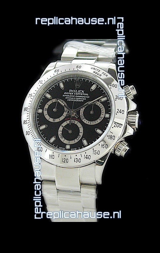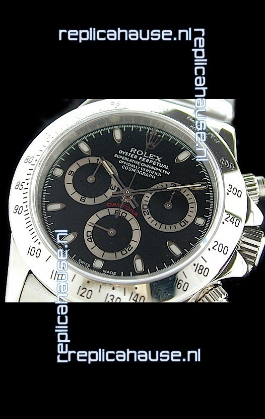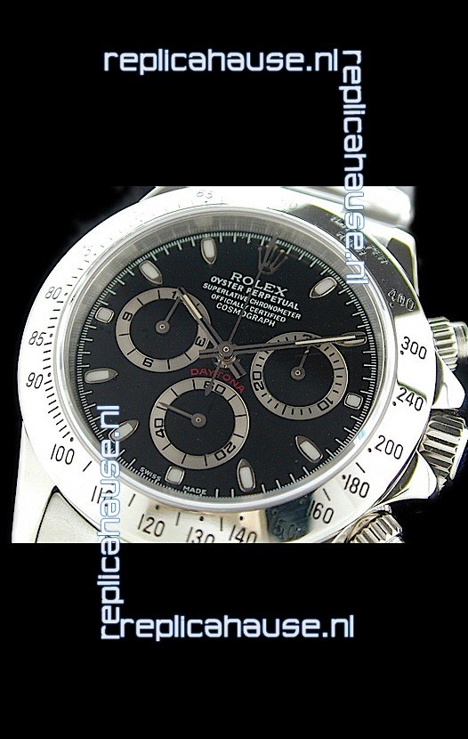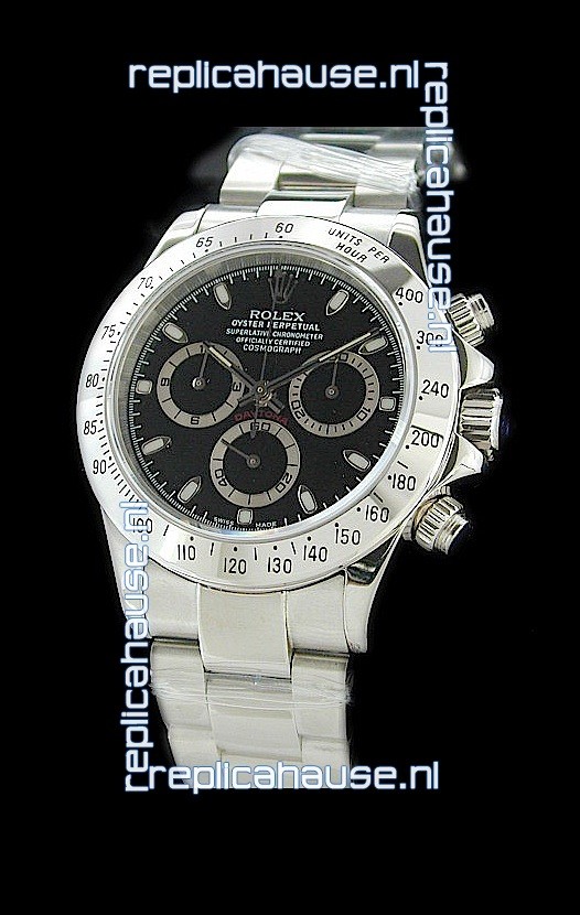 Rolex Daytona Cosmograph Swiss Replica Steel Watch in Black Dial