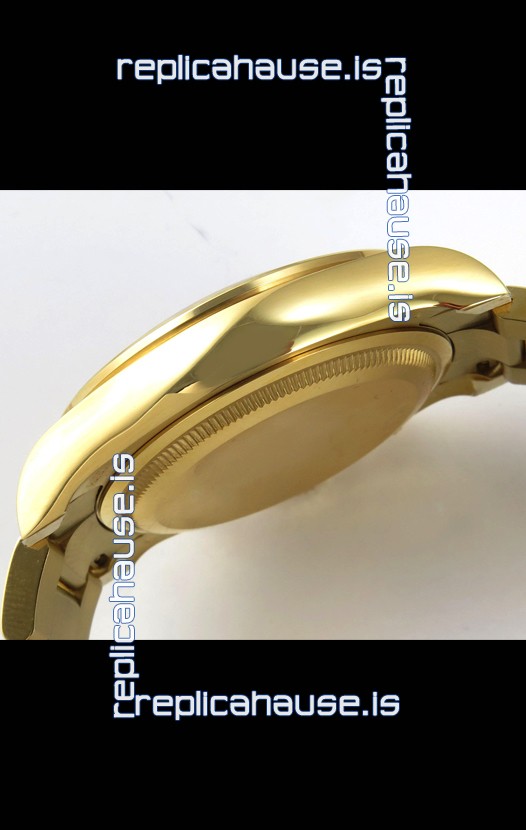 Yellow Gold Plating on 904 Solid Stainless Case with Rolex Markings and Engravings like the Authentic.