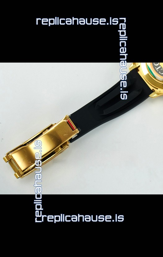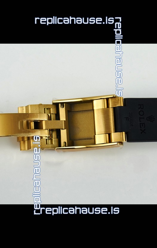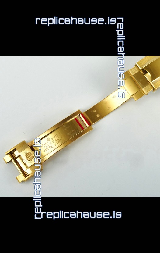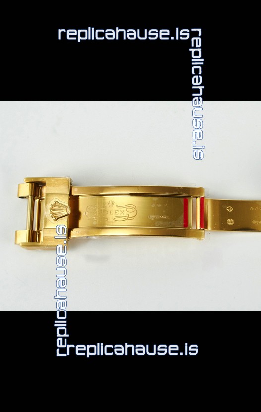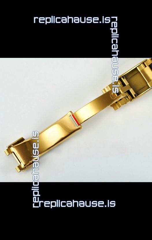 Yellow Gold Plating on 904 Solid Stainless Case with Rolex Markings and Engravings like the Authentic.