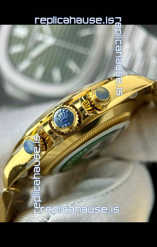 18K Yellow Gold Plating on 904 Solid Stainless Case with Rolex Markings and Engravings like the Authentic.