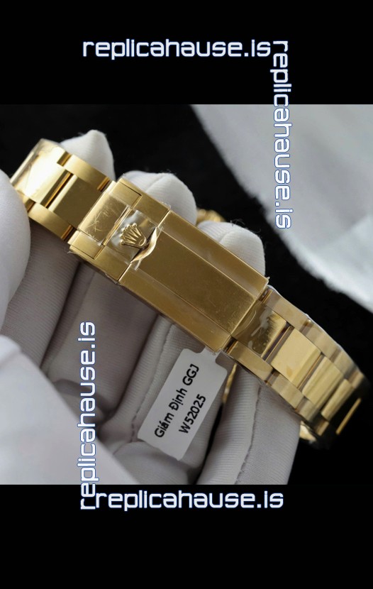 18K Yellow Gold Plating on 904 Solid Stainless Case with Rolex Markings and Engravings like the Authentic.