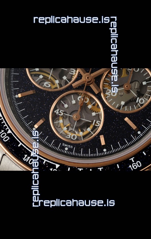 Genuine Cal.4130 Movement built from Scratch with no modifications, Platinum Plating on Rotors and Plates as per the original. The Same movement you find in Rolex Daytona Watches